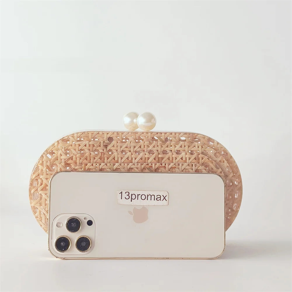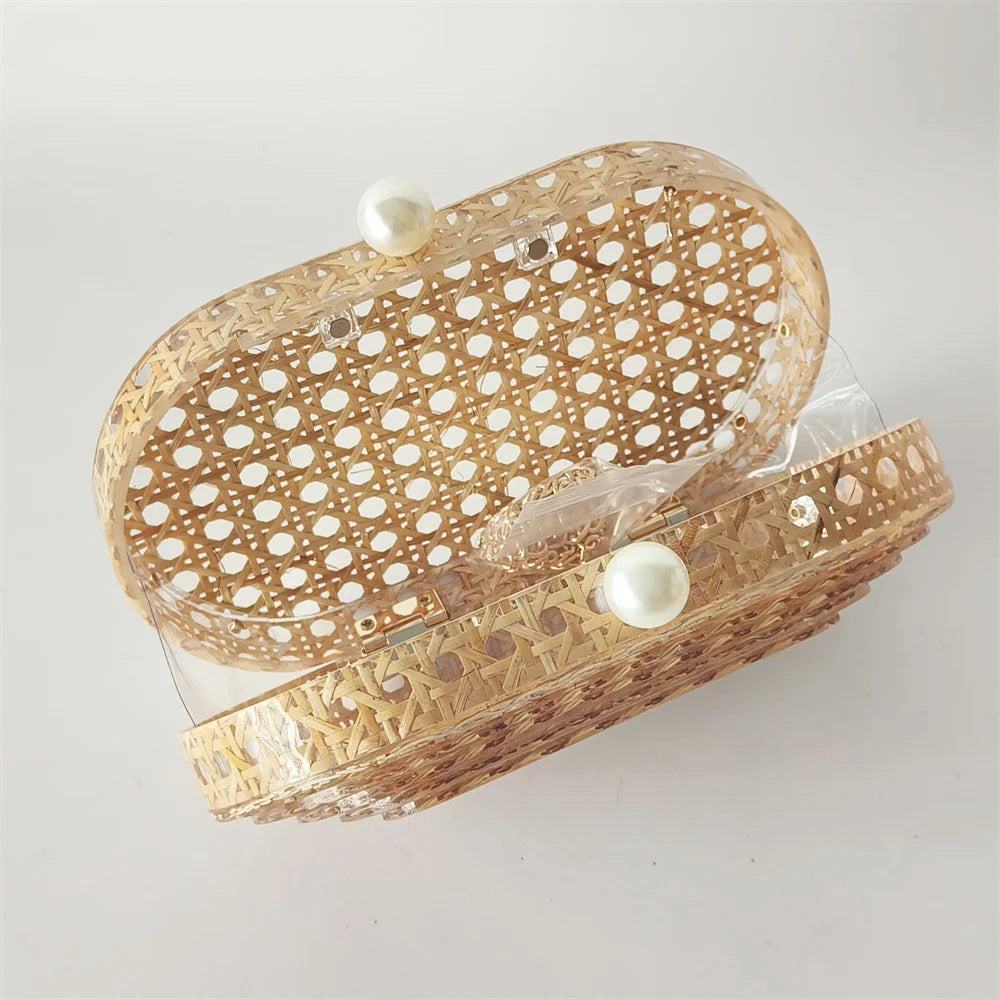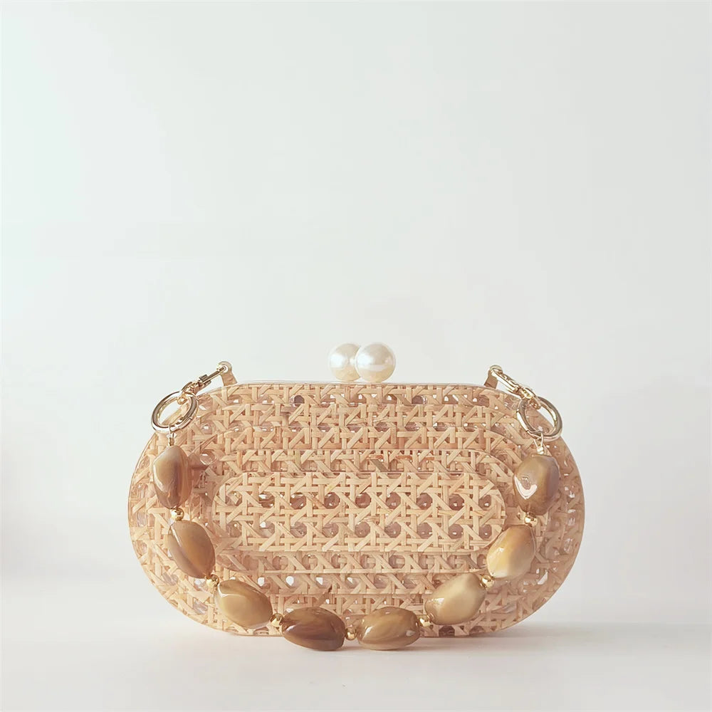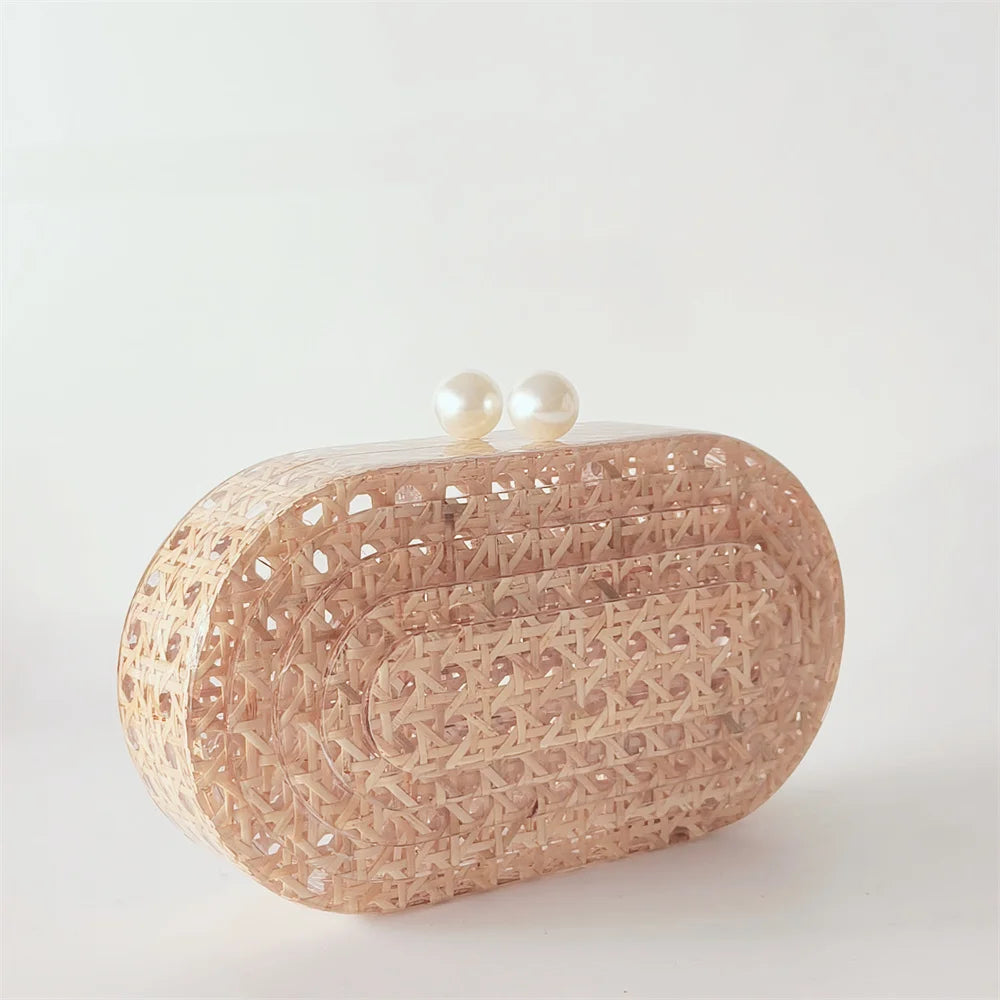 Lady Women Rattan Clutch Acrylic Egg Cane Bag