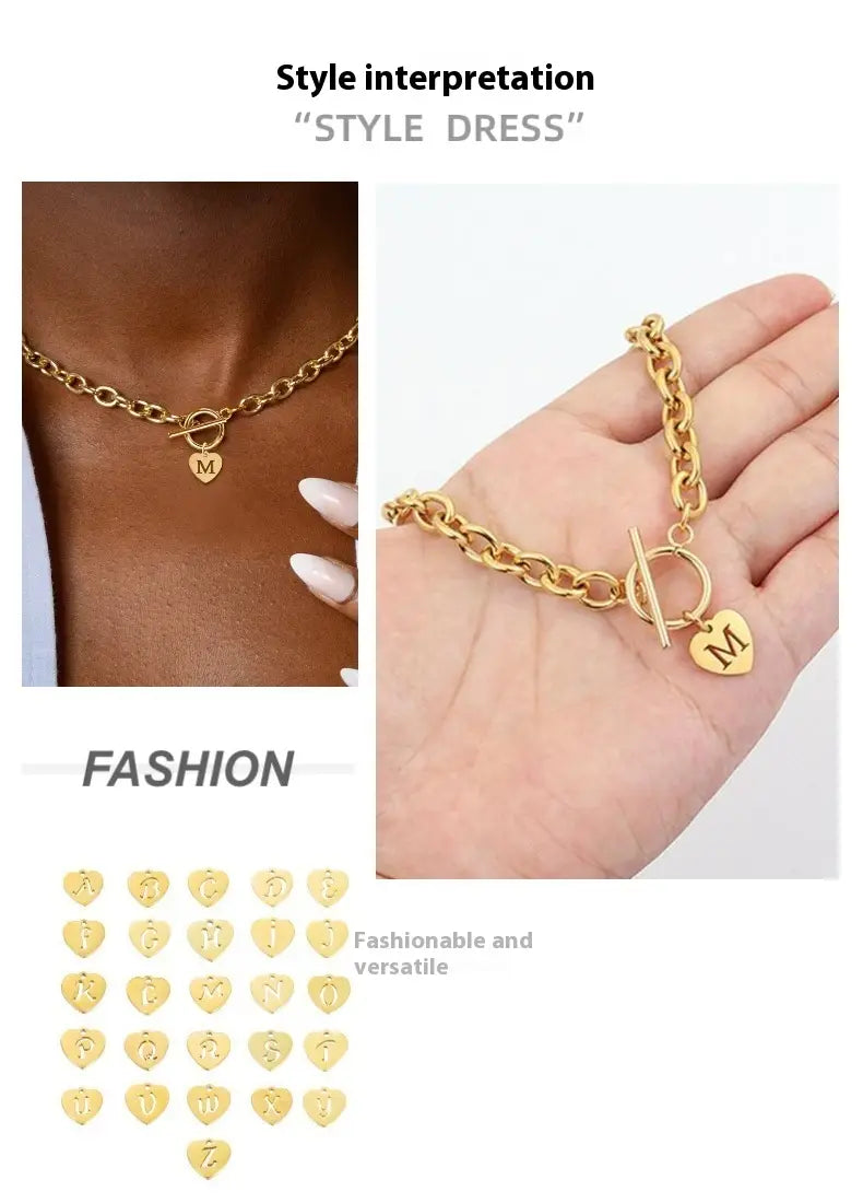Letter Necklace Stainless Steel Heart Pendant - electronic accessories