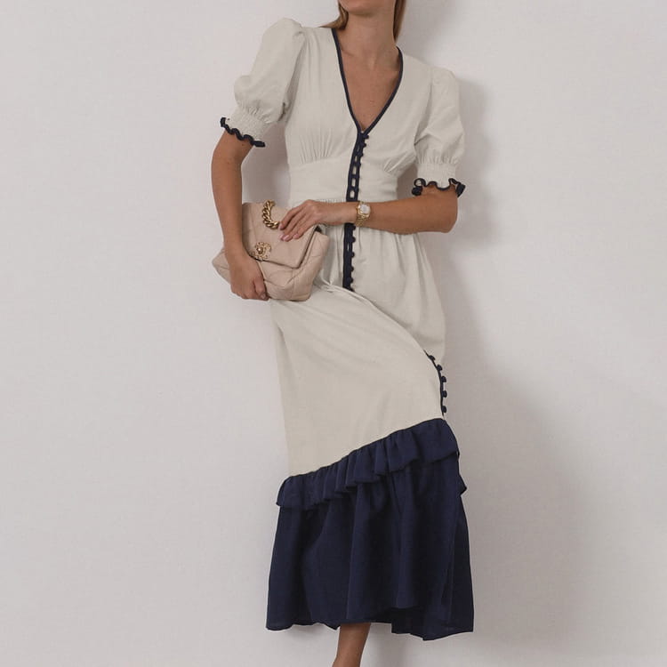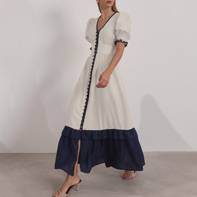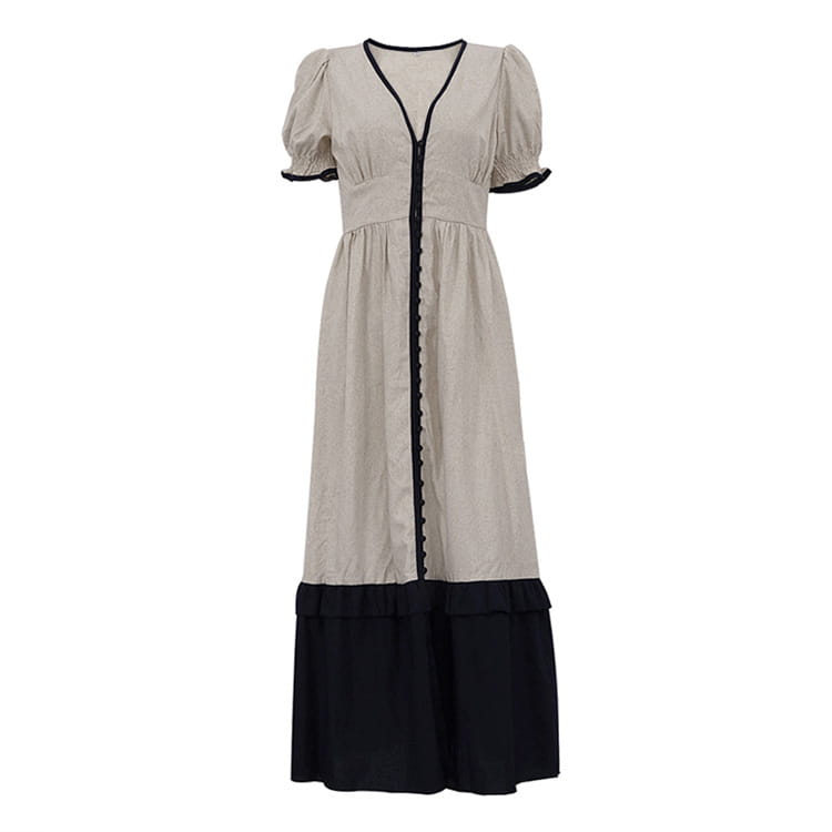 Linen Contrast Color Cardigan Dress - electronic accessories