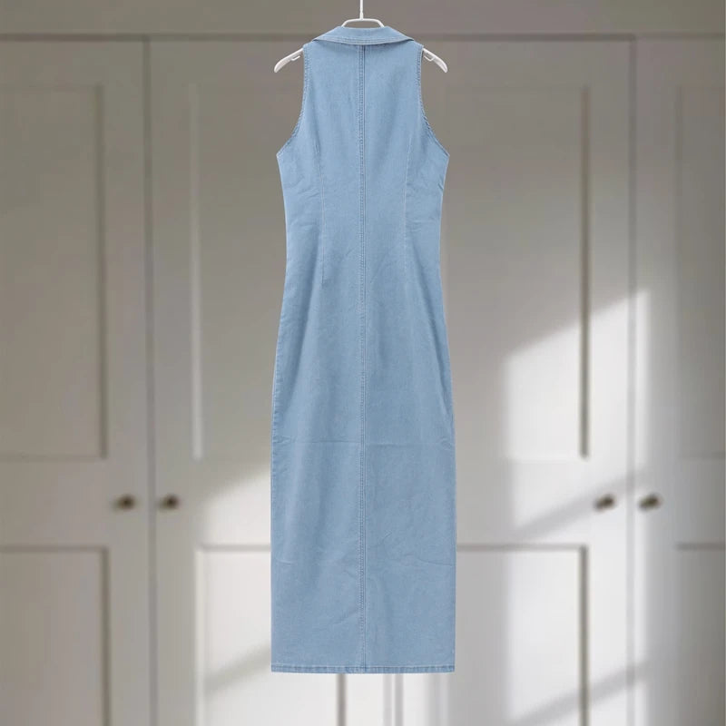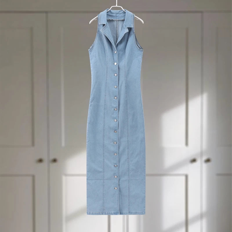 Long Dress For Women Turn-down Collar Sleeveless Single Breasted Front Split