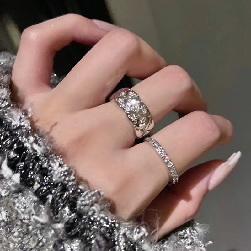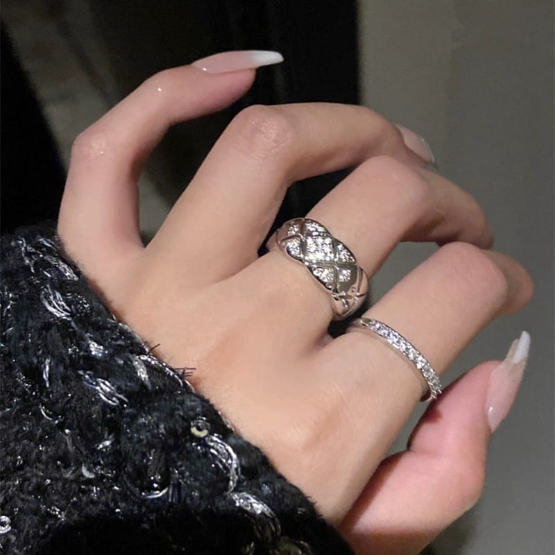 Micro Inlaid Zircon Classic Style Diamond Plaid Ring - electronic accessories