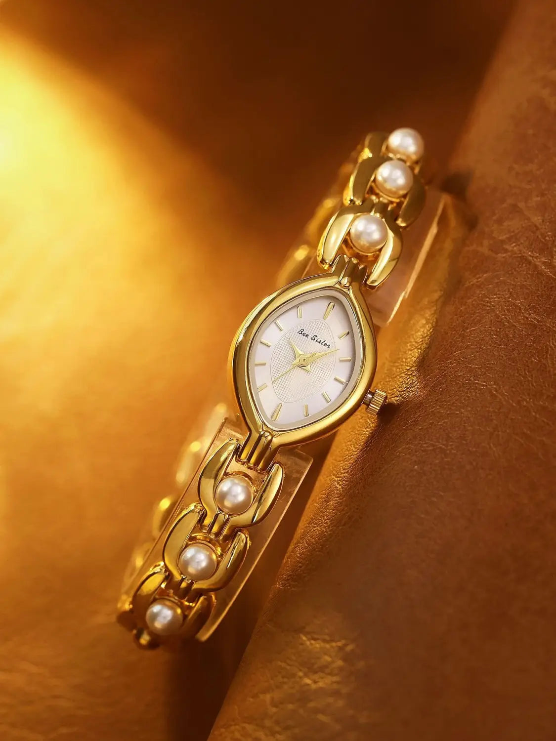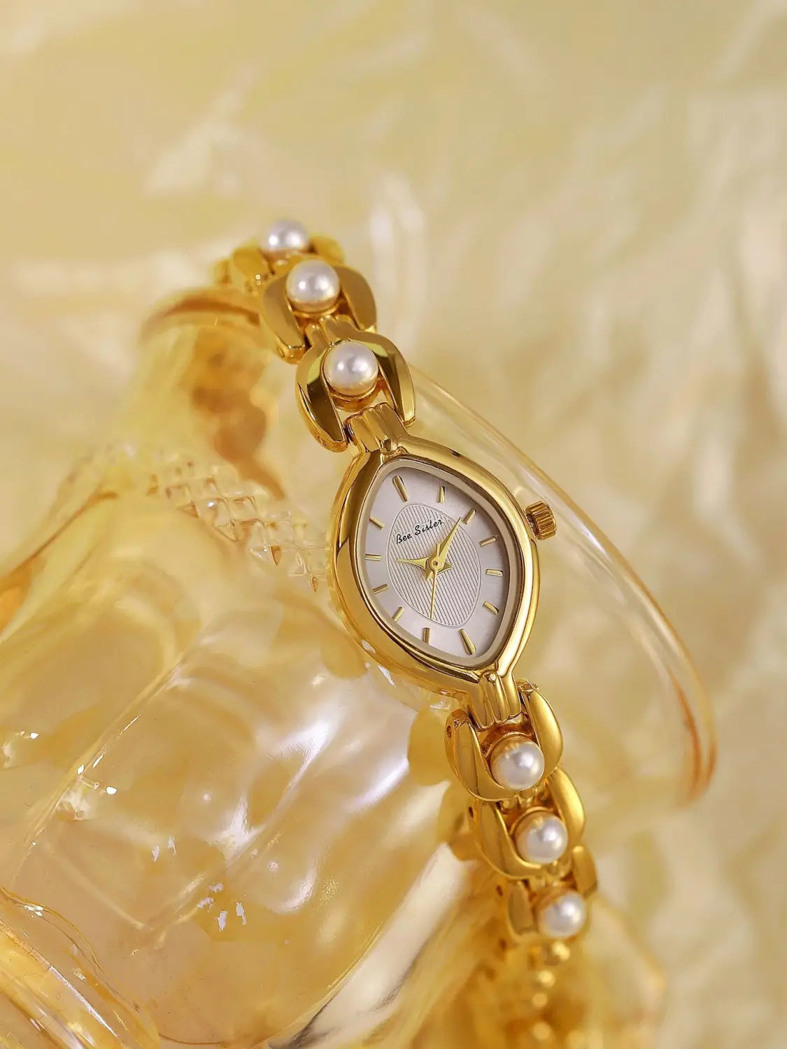 Mid-ancient Light Luxury Imitation Pearl Elegant Women’s Watch - Retro Gold - electronic accessories