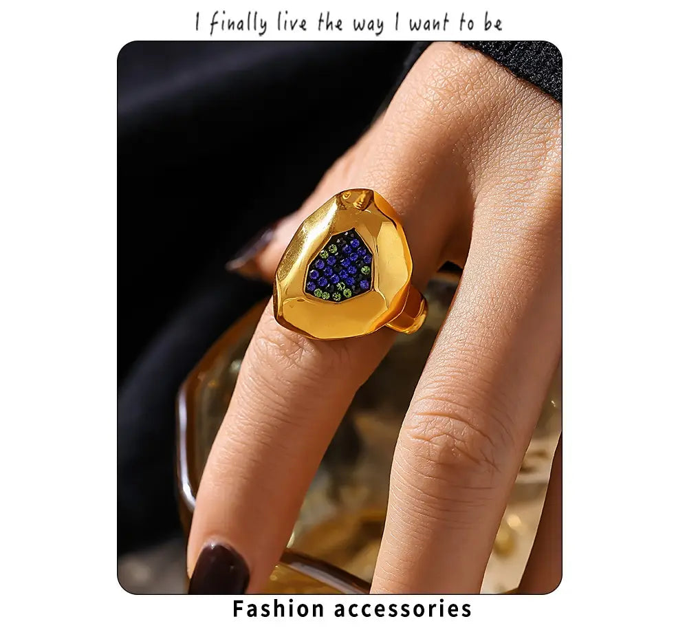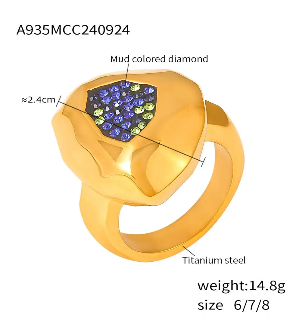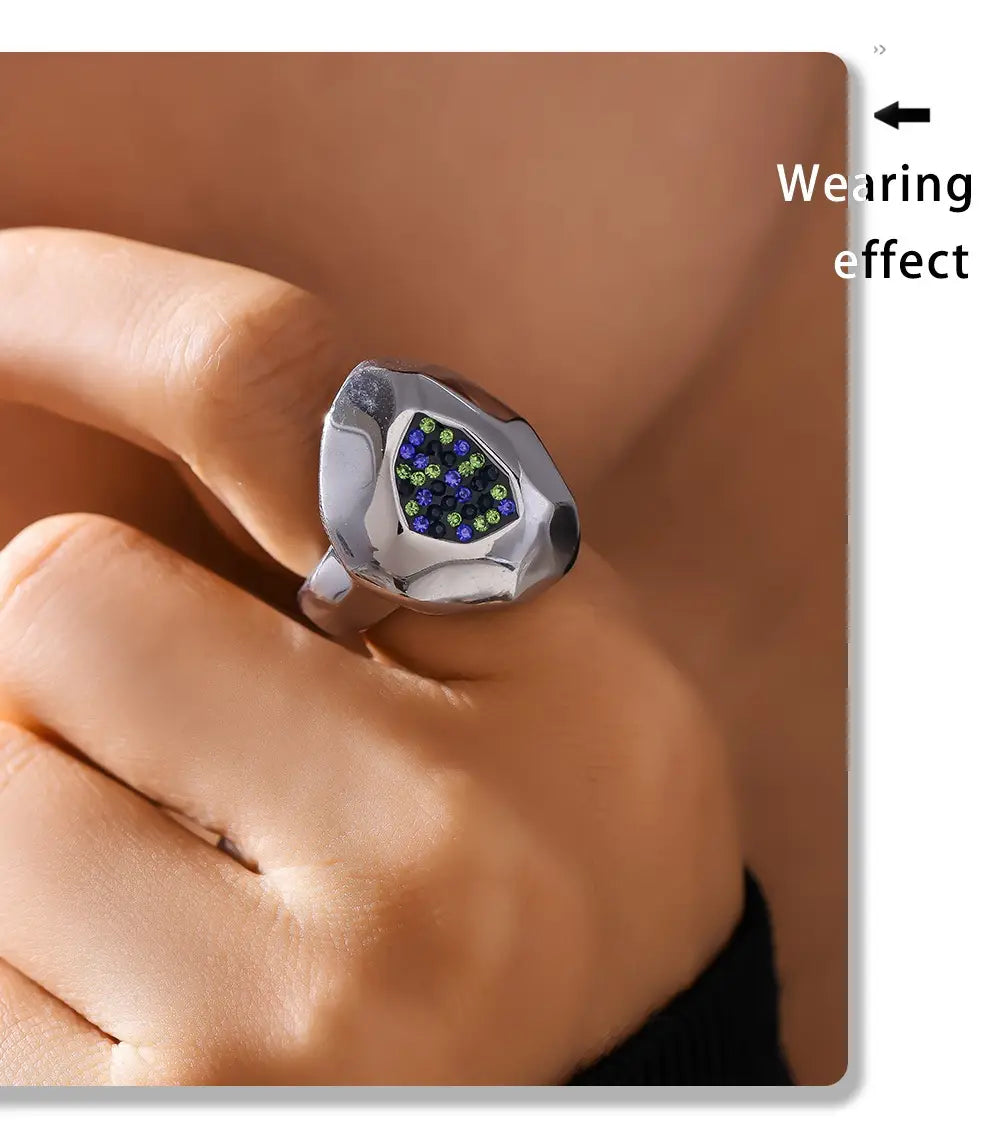 Multilateral Cut Colorful Crystals Ring - electronic accessories