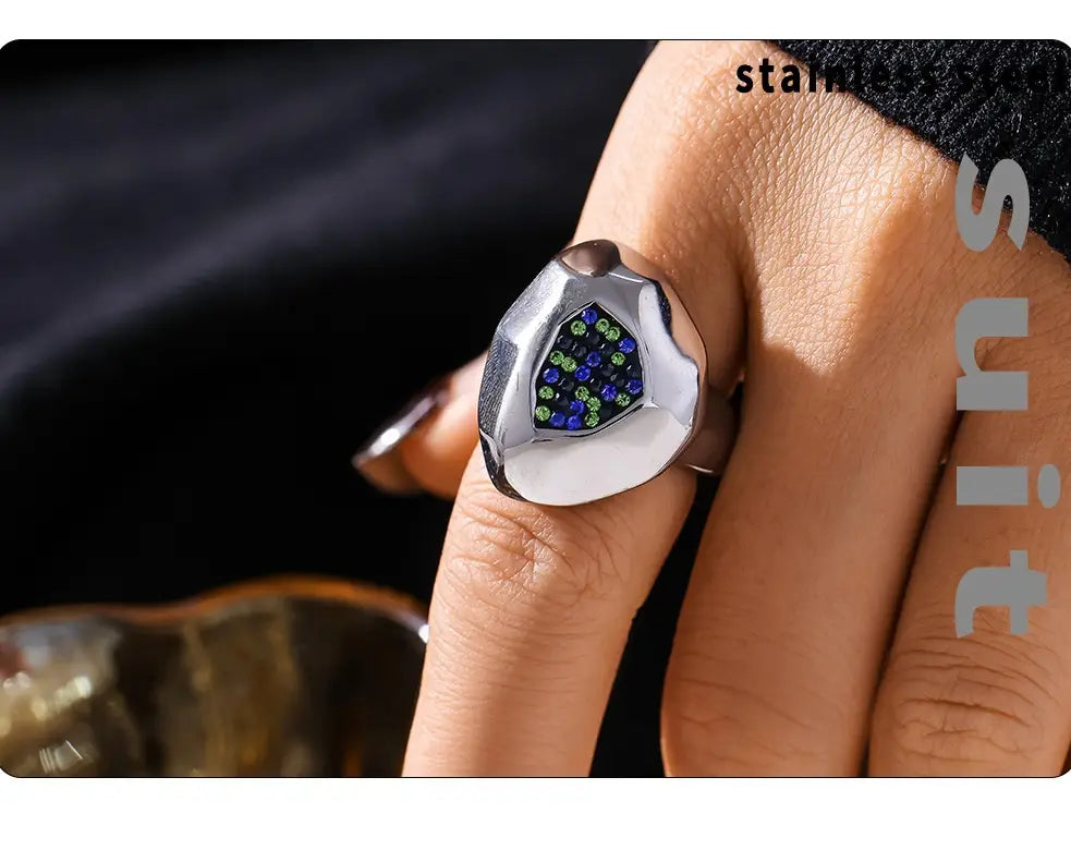 Multilateral Cut Colorful Crystals Ring - A935 Steel / No 6 - electronic accessories