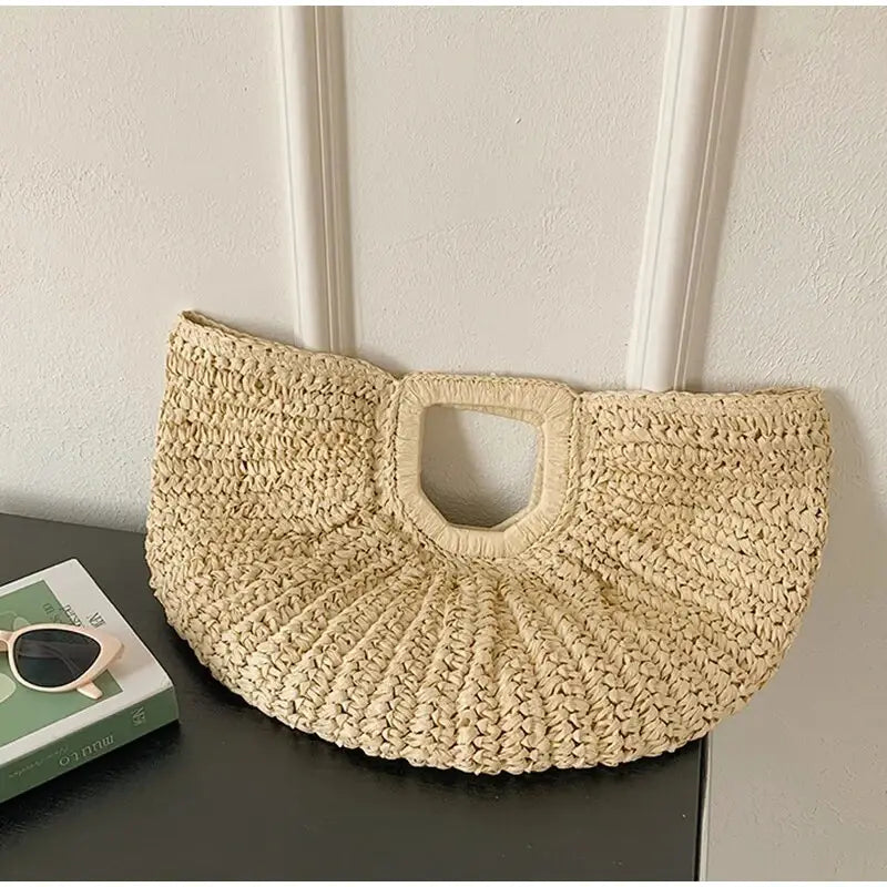 Natural Fiber Snap Clutch Bag