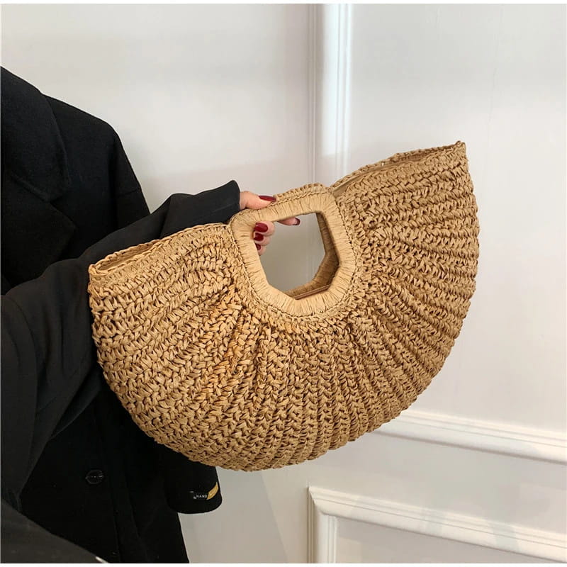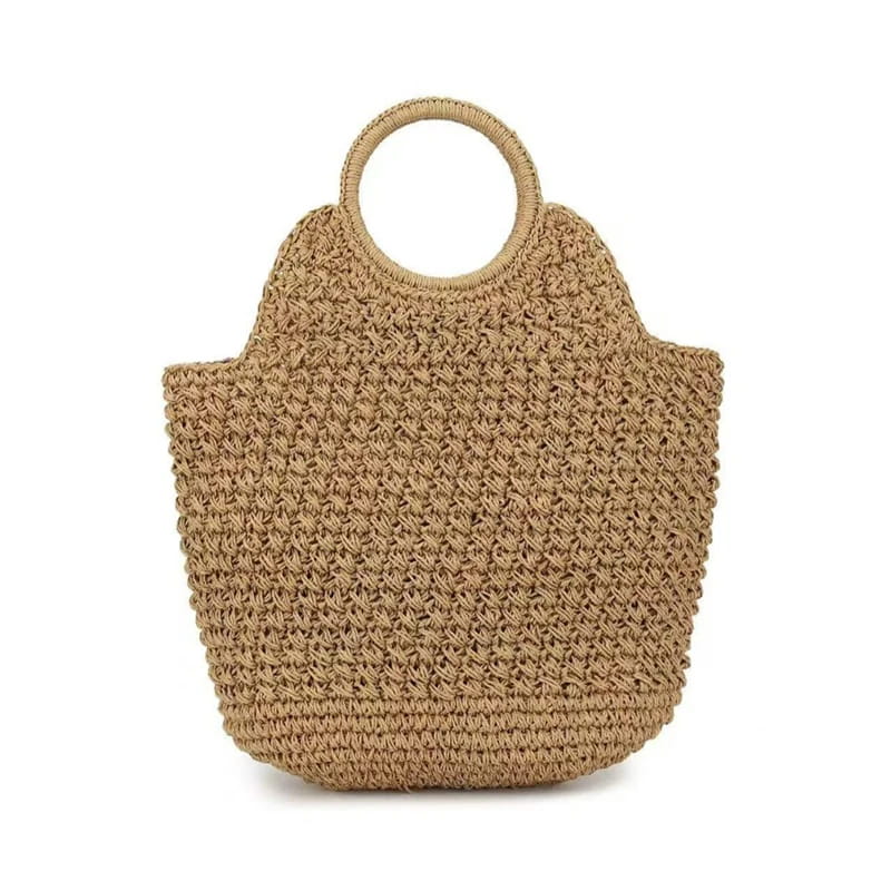 Natural Fiber Snap Clutch Bag - A-Coffee