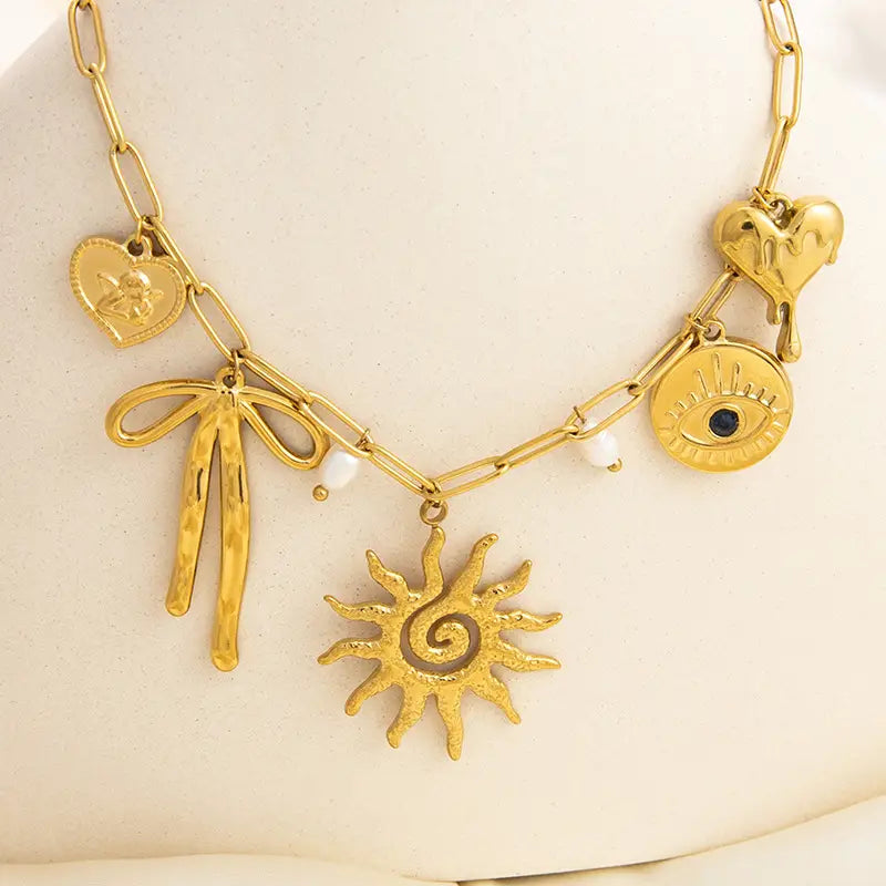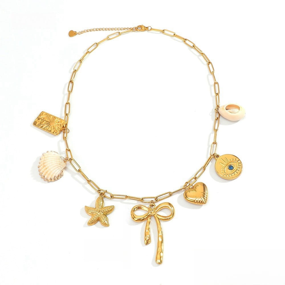New Stainless Steel 18K Gold Sun Shell Pendant Necklace - electronic accessories