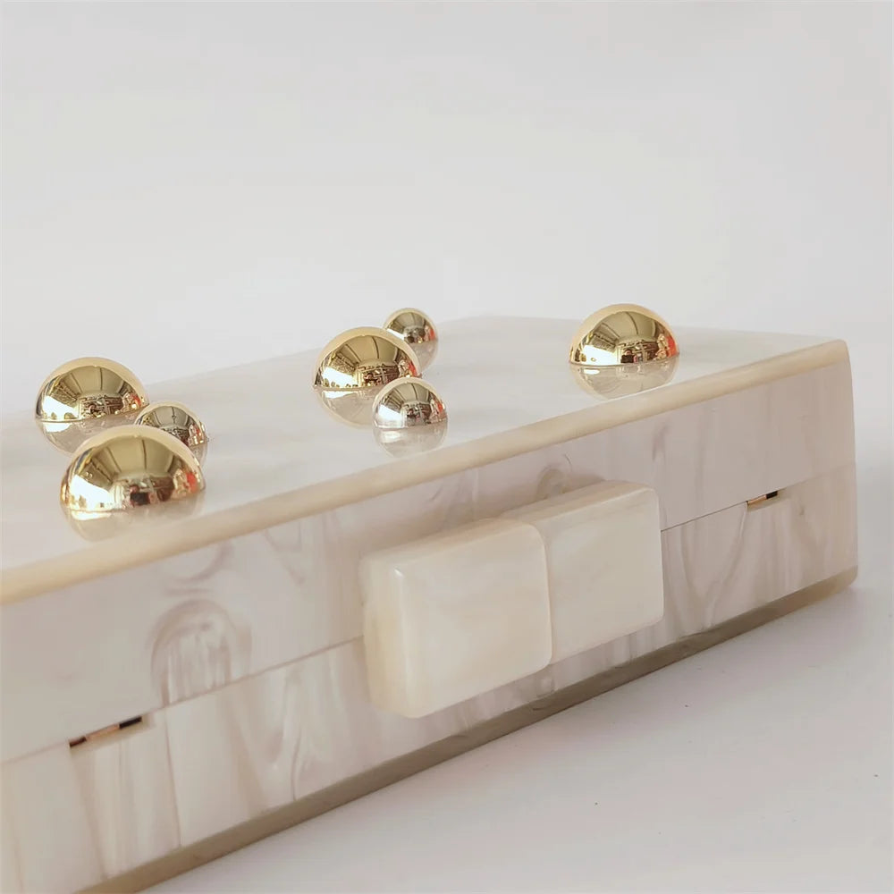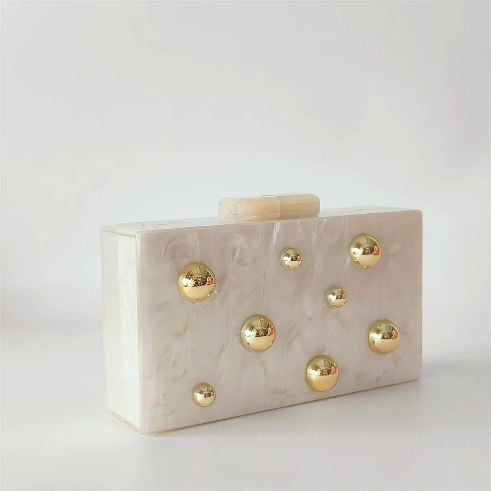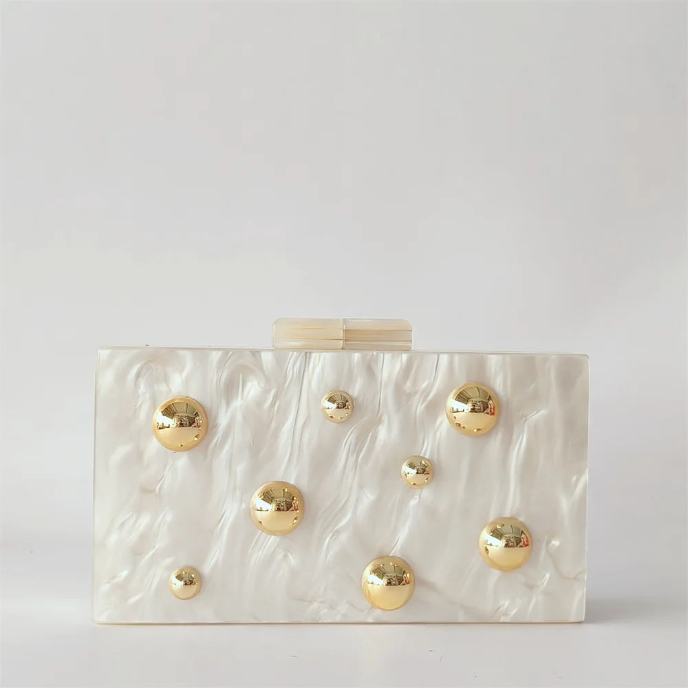 Pearl Beige Metal Dot On Surface Acrylic Clutch Purse