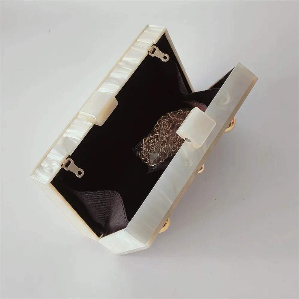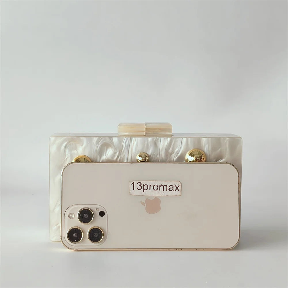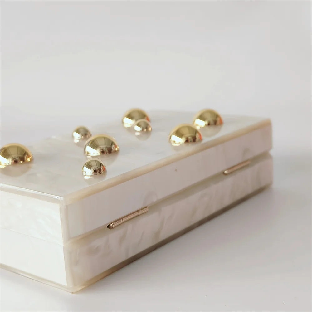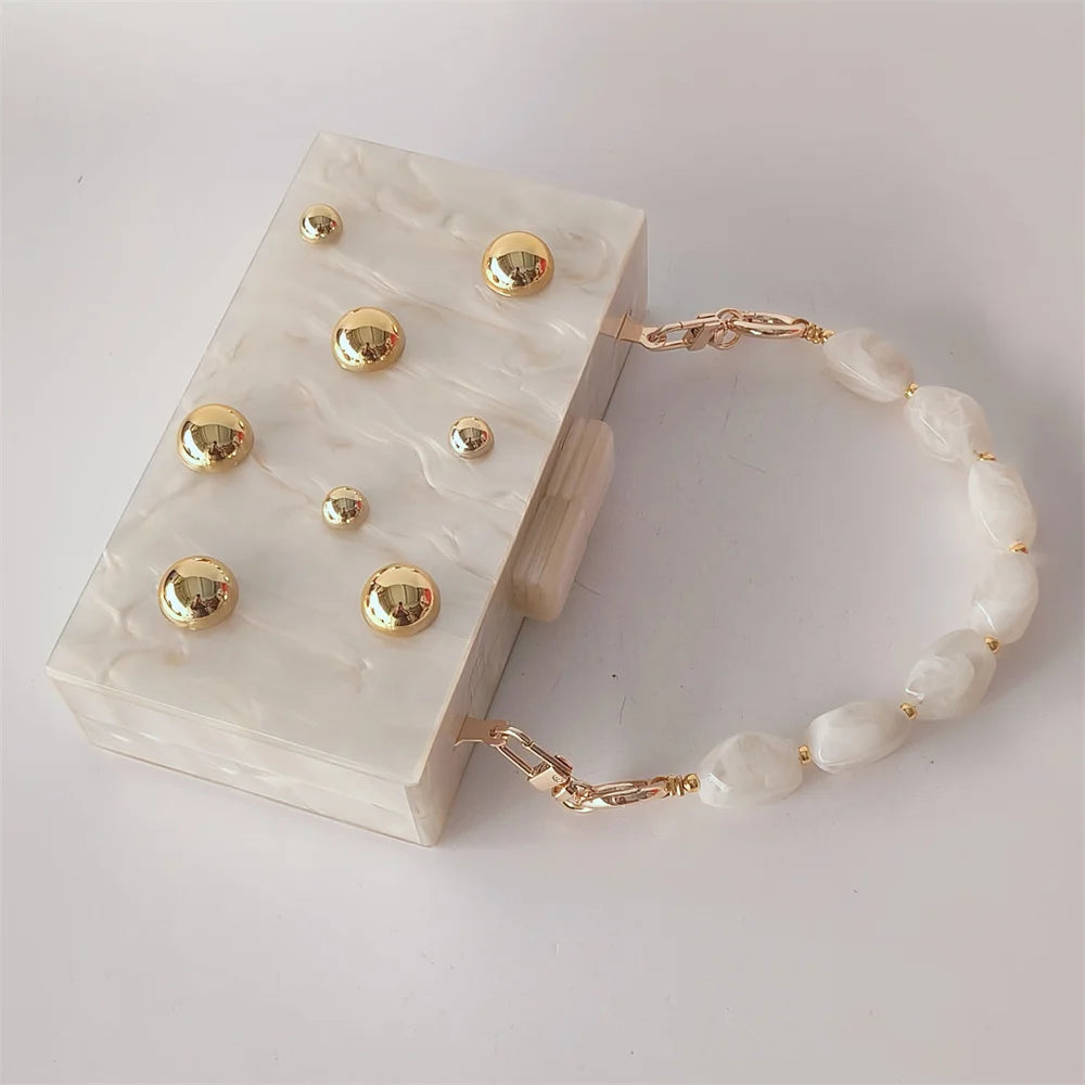 Pearl Beige Metal Dot On Surface Acrylic Clutch Purse