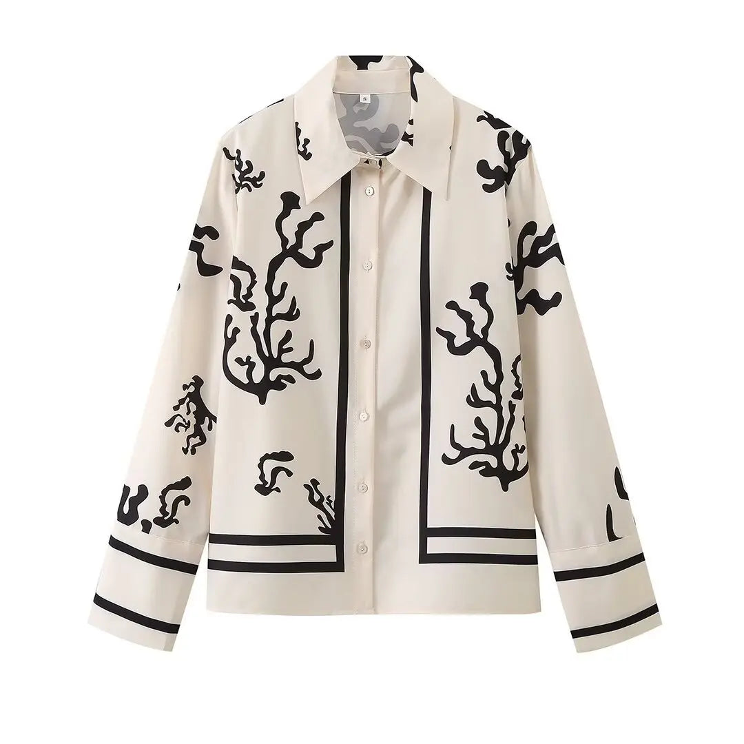 Print Suit Women Casual Lapel Long Sleeve Blouse Wide Leg Trousers