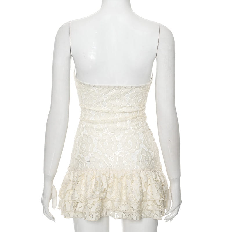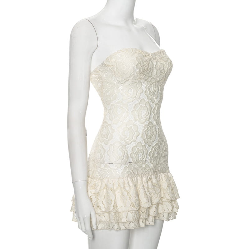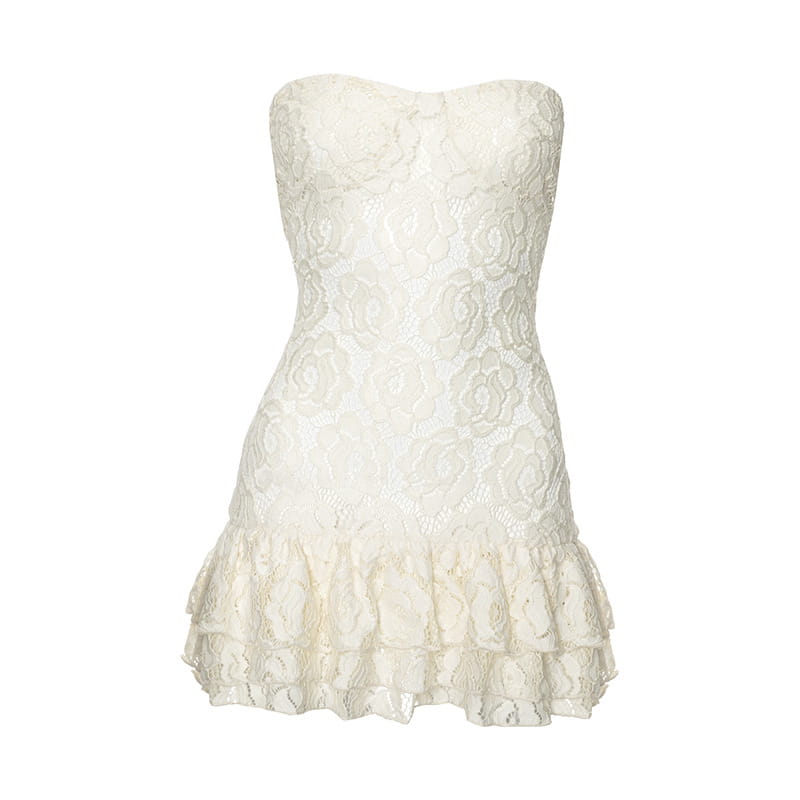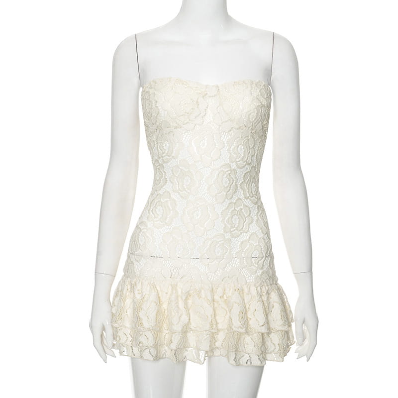 Pure Color Tube-top Lace High Waist Dress - electronic accessories