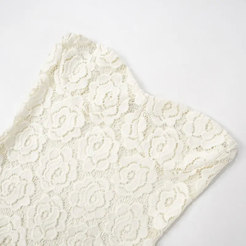 Reinfarbiges Tube-Top-Spitzenkleid mit hoher Taille