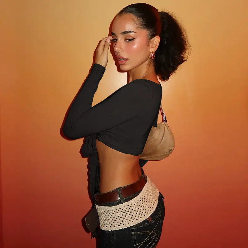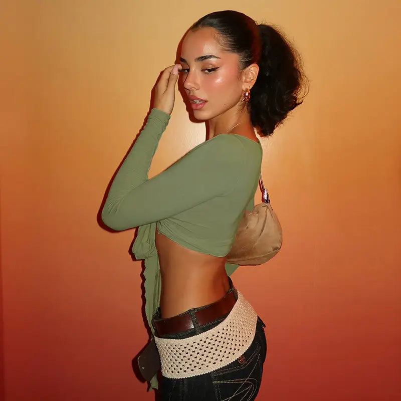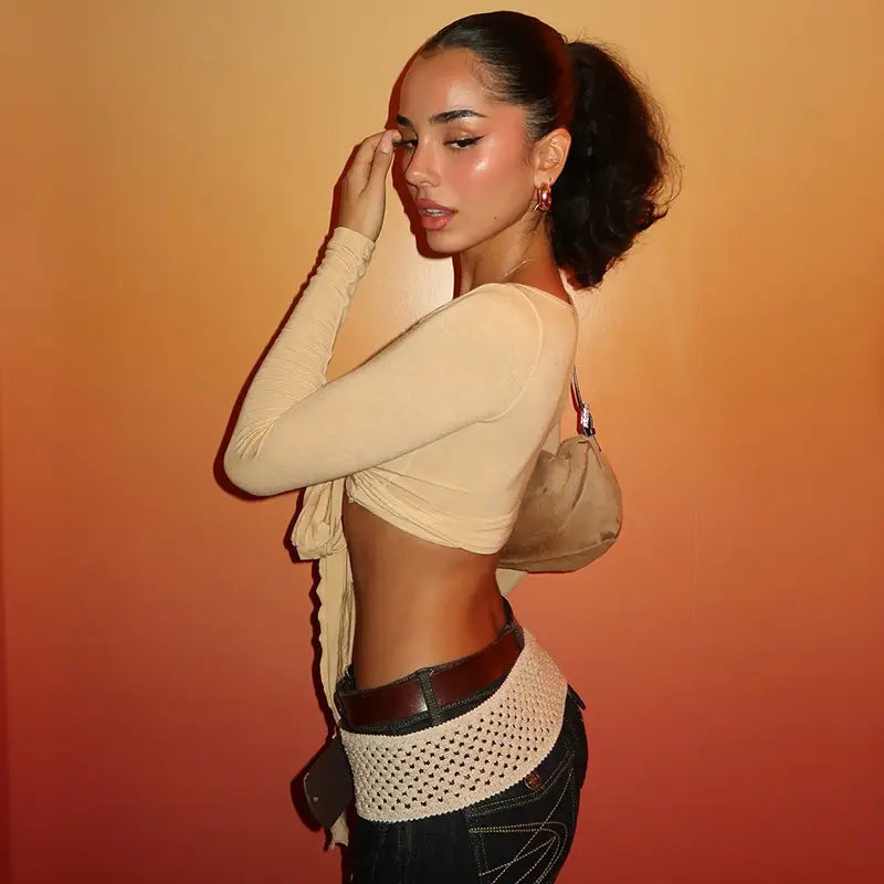 Pure Desire Strap Long-sleeved T-shirt Deep V-neck Short Blouse - electronic accessories
