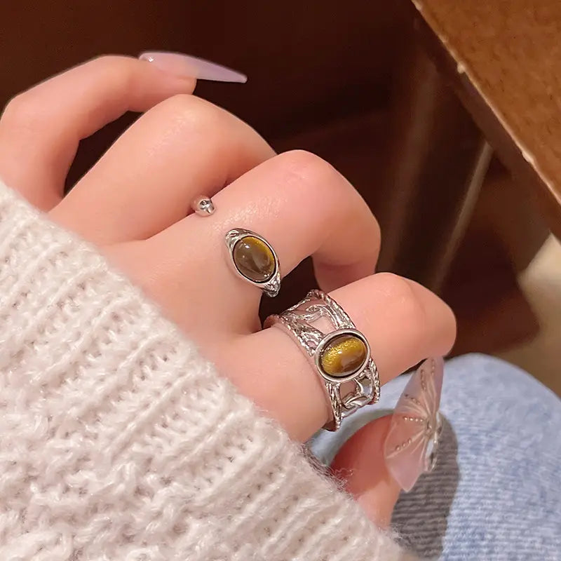 Rad Tigerauge Heavy Industry Ring Weiblicher wechselbarer Zeigefingerring