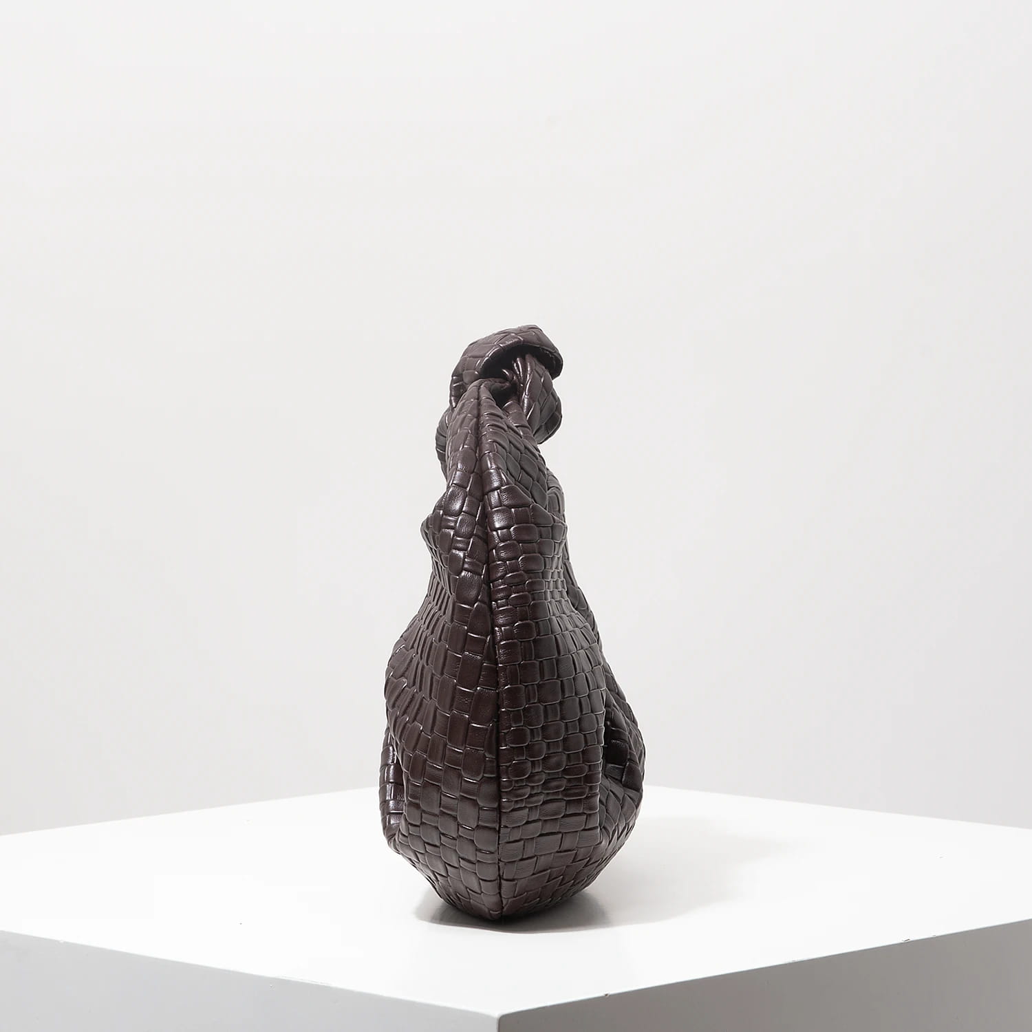 Retro Artificial Leather Woven Pattern Handbag - Coffee
