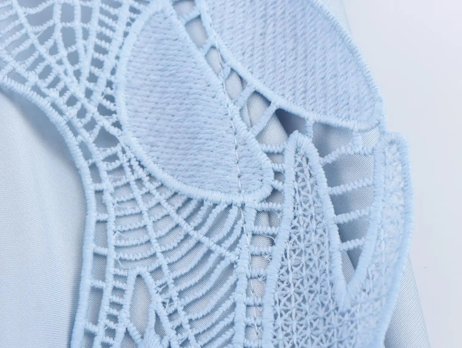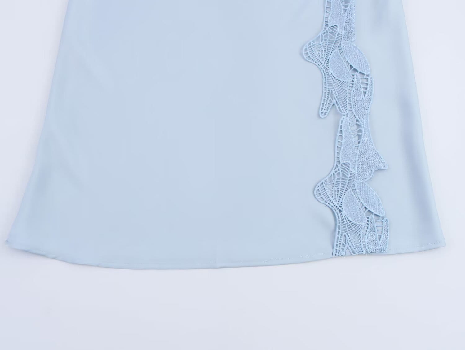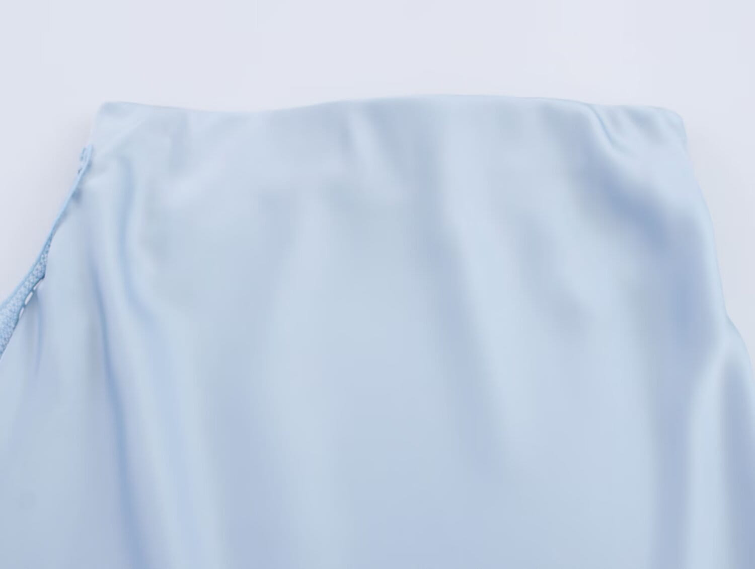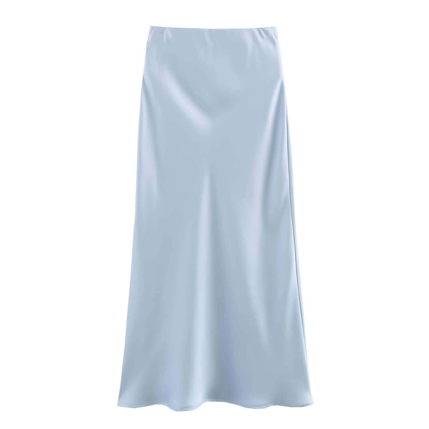 Side Slit Lace Elastic Waist Satin Skirt Long - Blue / L - Other