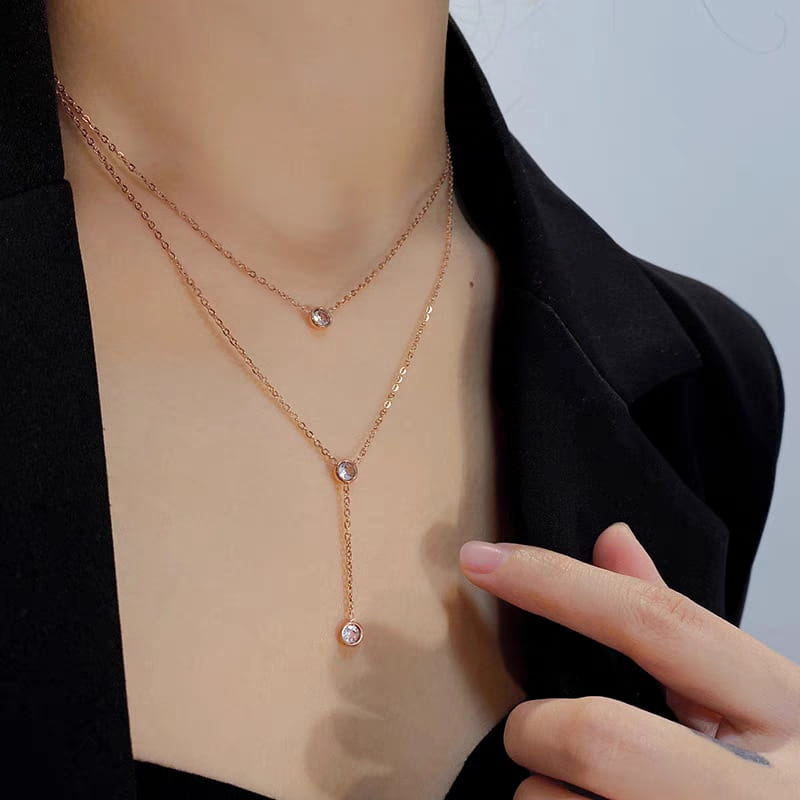 Single Diamond Zircon Tassel Titanium Steel Necklace For Women - Rose Gold Su - electronic accessories