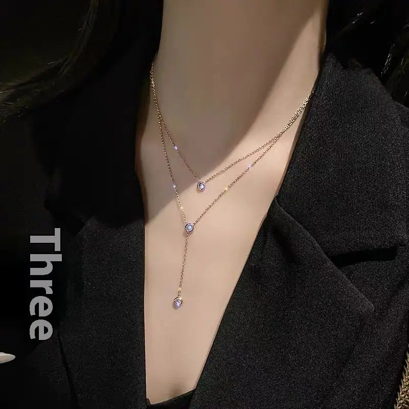 Single Diamond Zircon Tassel Titanium Steel Necklace For Women - electronic accessories
