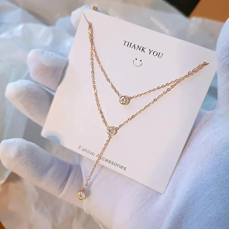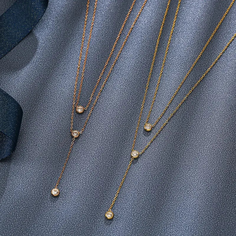 Single Diamond Zircon Tassel Titanium Steel Necklace For Women - Gold - electronic accessories