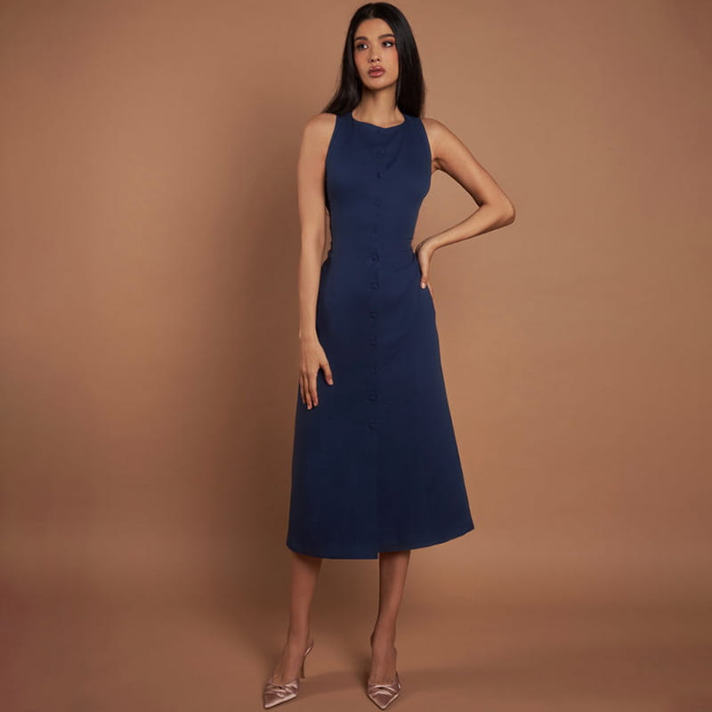 Sleeveless Round Neck Multi-button Strap Casual Dress - Dark Blue / L - electronic accessories
