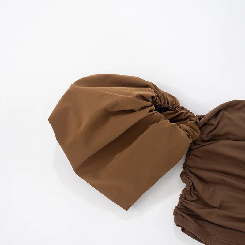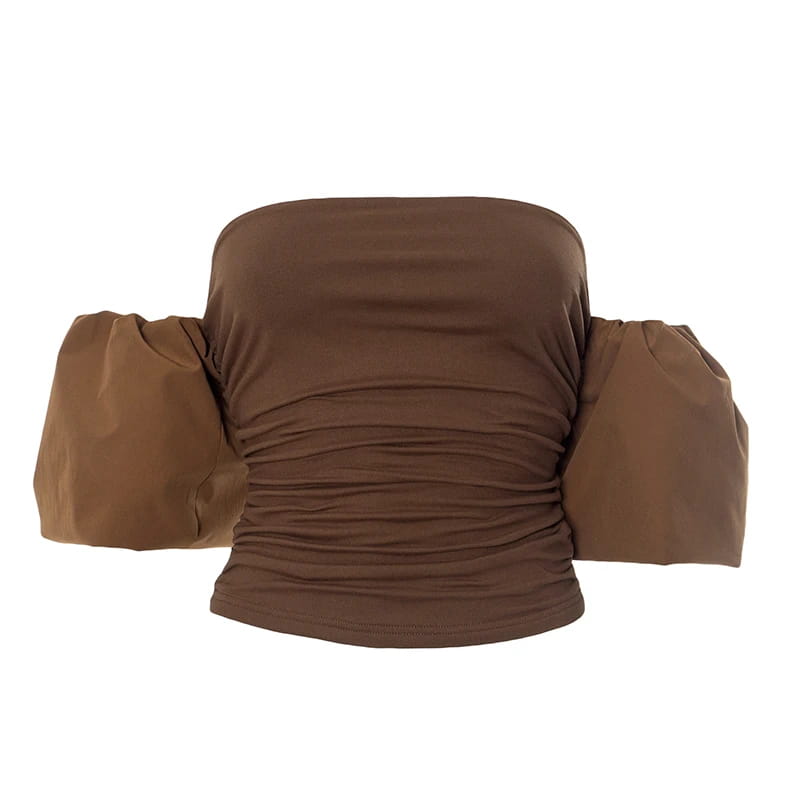 Slim Section Shrink Pleated Puff Sleeve Strapless Top Women'S