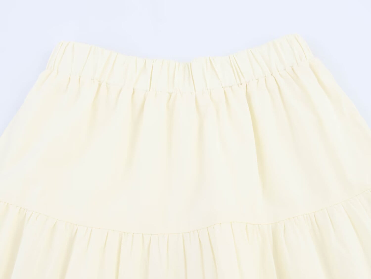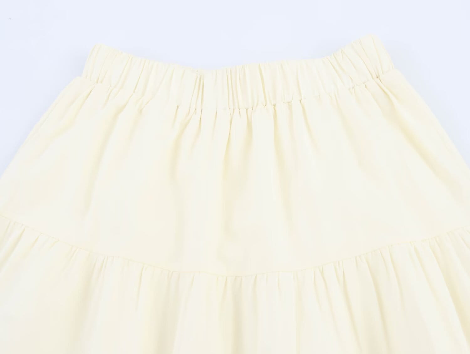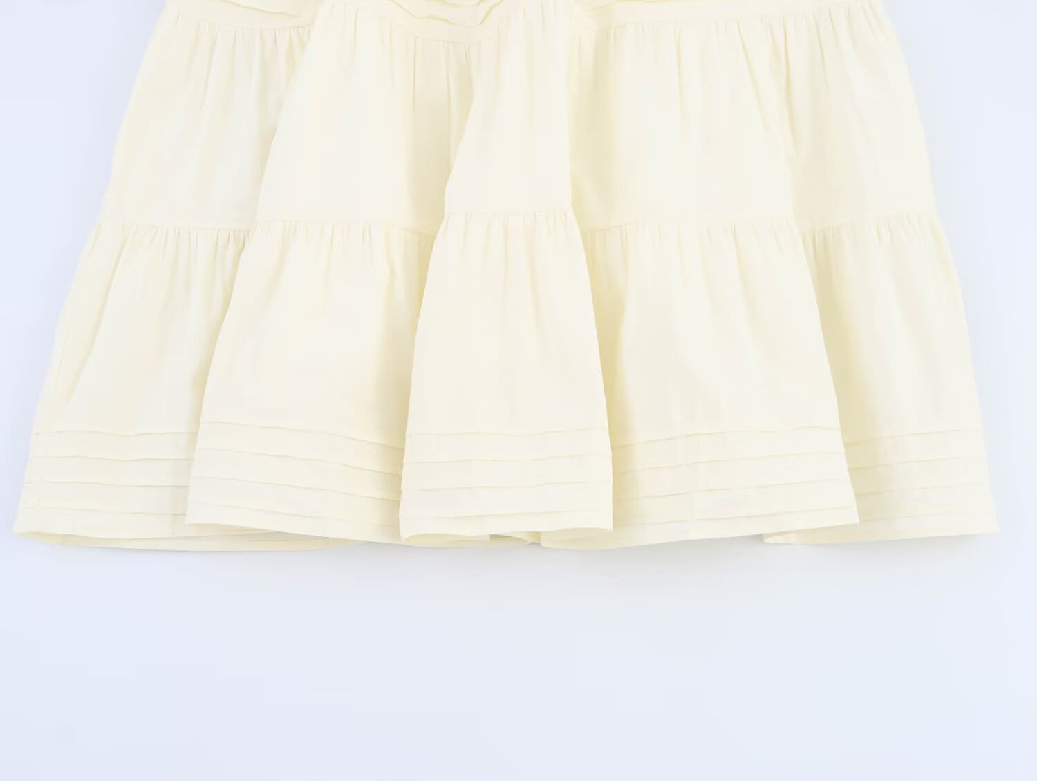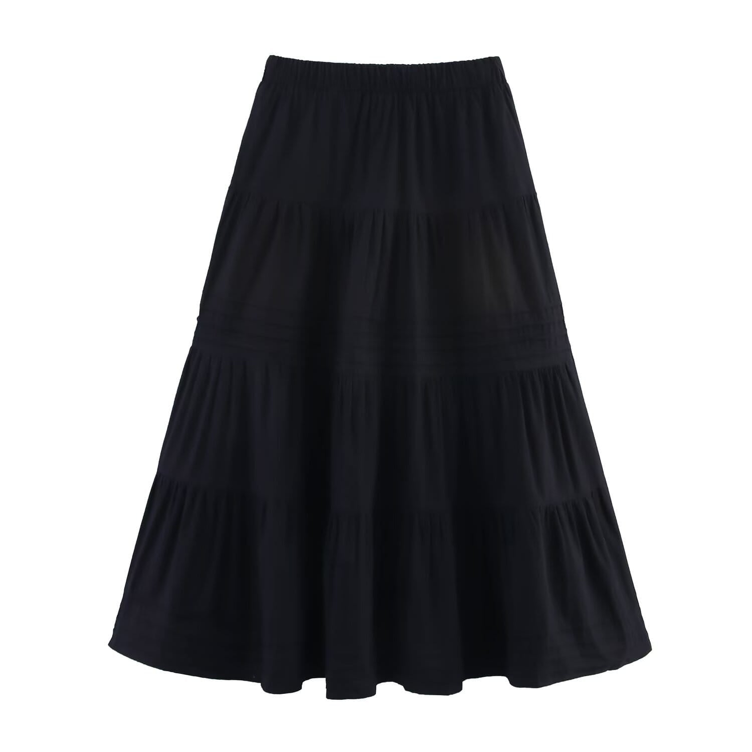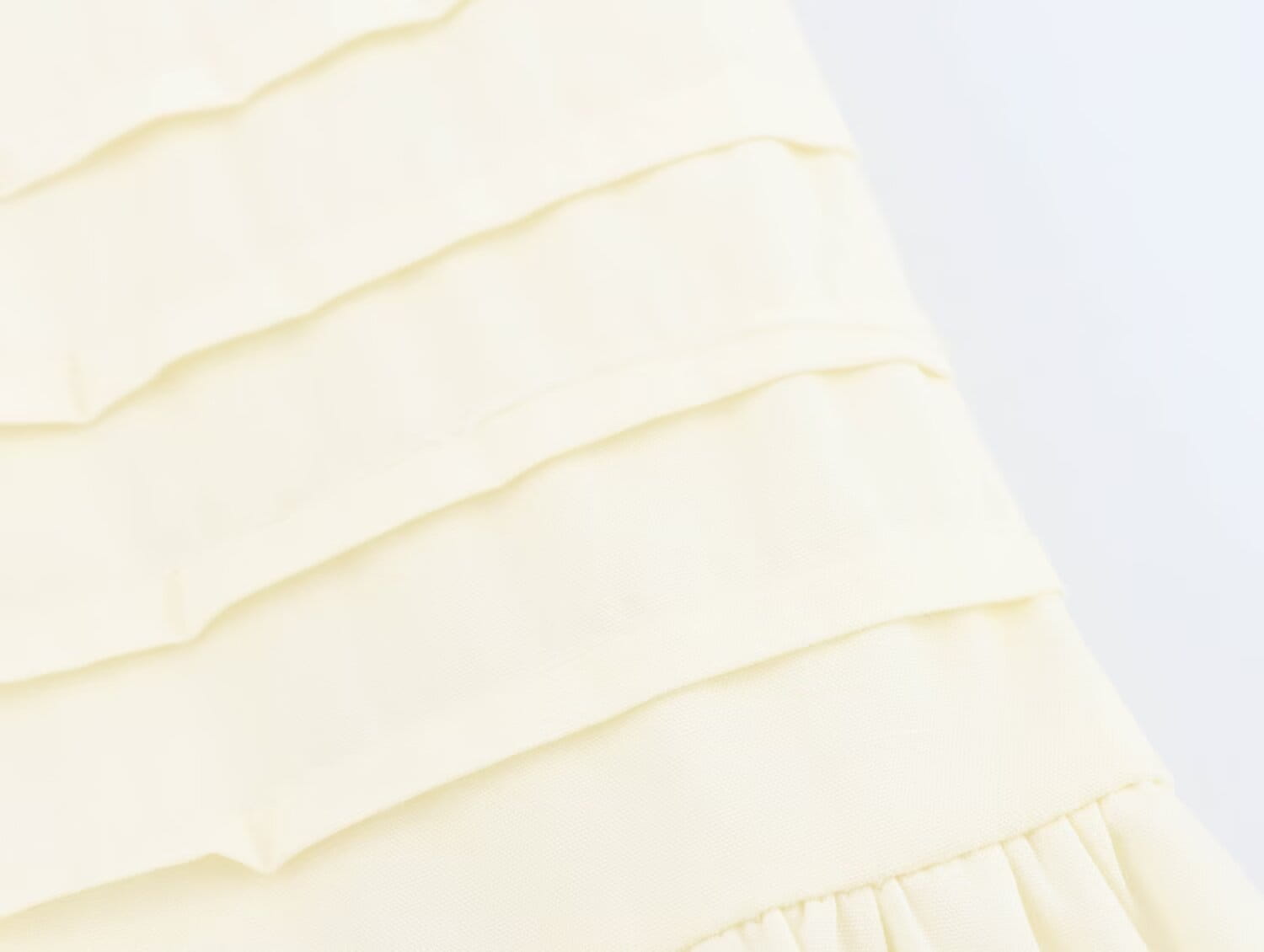 Solid Color Cotton Cloth Big Hem Skirt Stripes Multi-layer Tiered Dress - Other