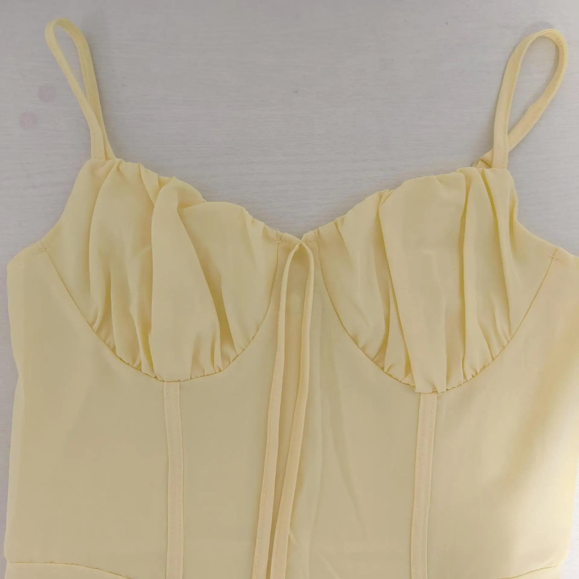 Solid Color Slip Dress Lace-up Elegant A-line Long - Yellow / S