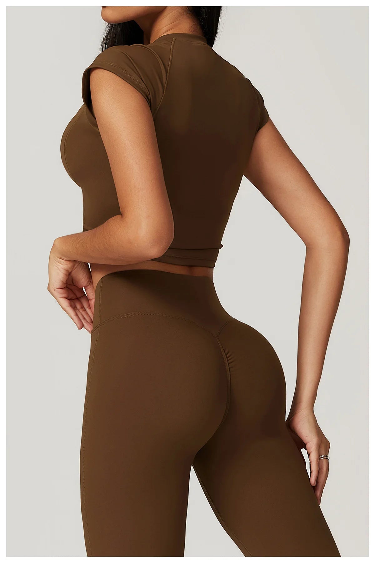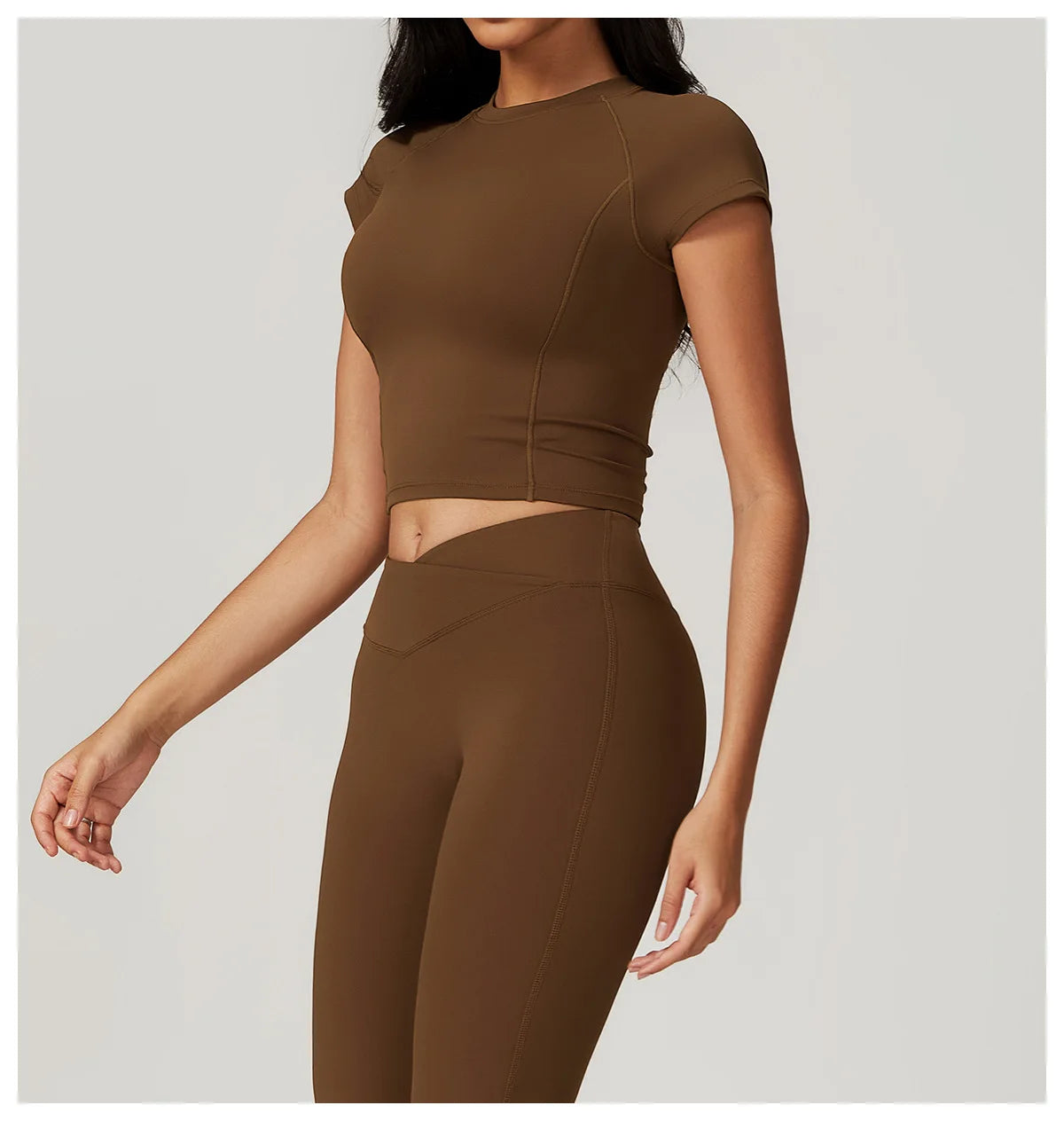 Sports T-shirts Women Yoga Short Sleeved Tight Running Fitness Breathable T-shirt - Light coffee / S / CHINA