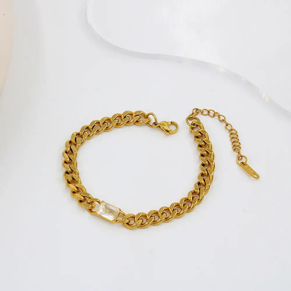 Stainless Steel Cuban Link Chain Zircon Stitching Necklace Vacuum 18K Electroplating - 7mm White Diamond Bracelet