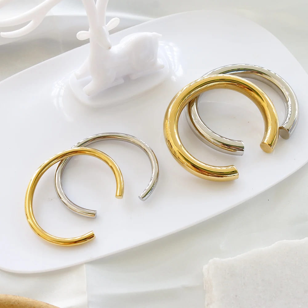 Stainless Steel Gold Color Thick Tube Open Bangle For Women - 4mm Silver G / China