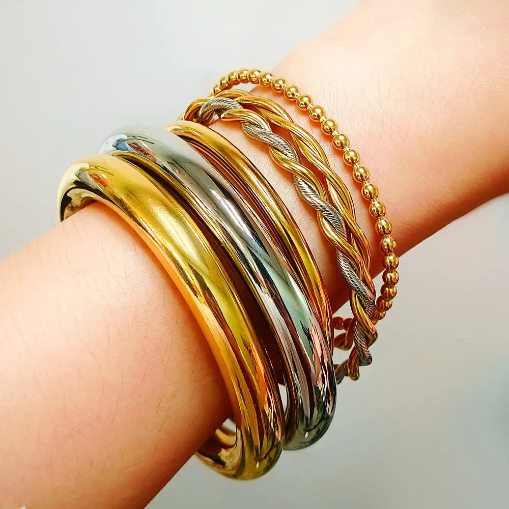 Stainless Steel Gold Color Thick Tube Open Bangle For Women - 5mm MiX A / China