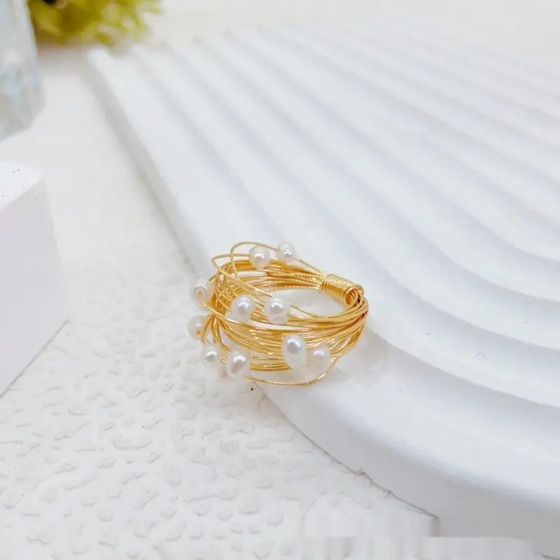 Starry Sky Winding Tourmaline Pearl Ring - Yellow - electronic accessories