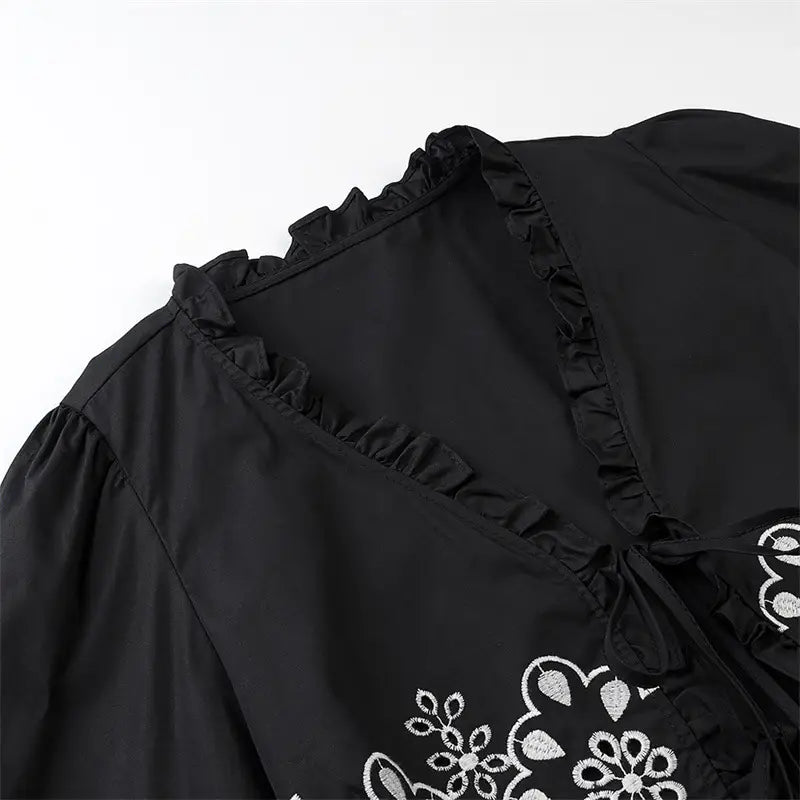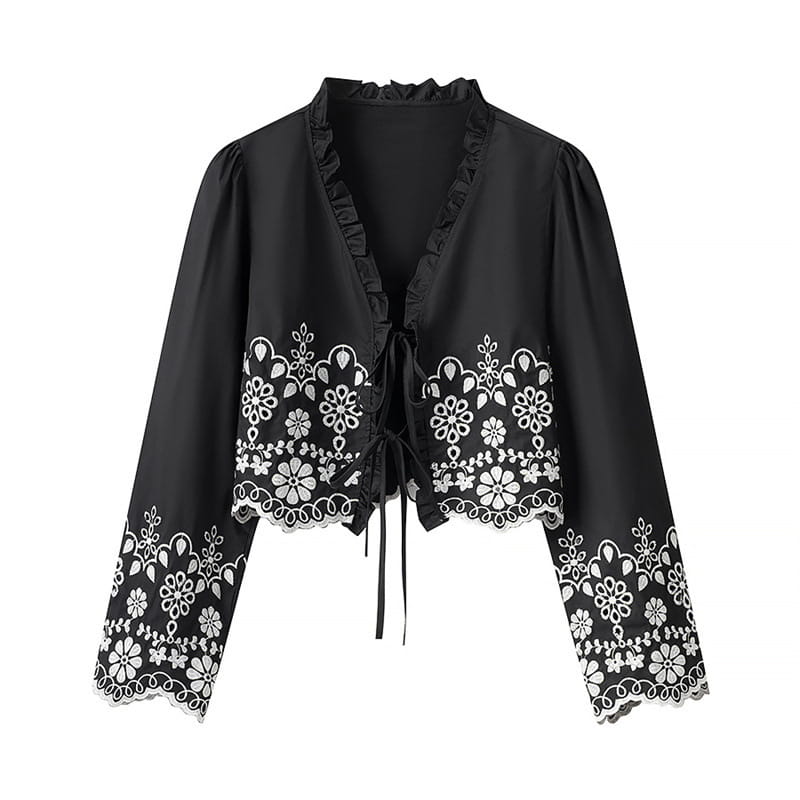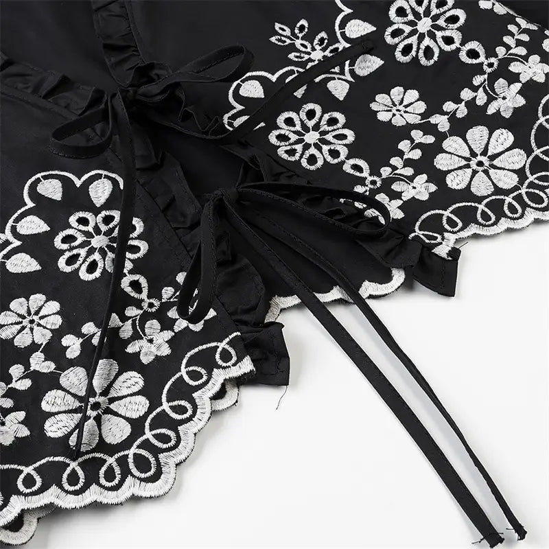 Stylish Simple And Versatile Hollow Embroidered Cotton Top - Other