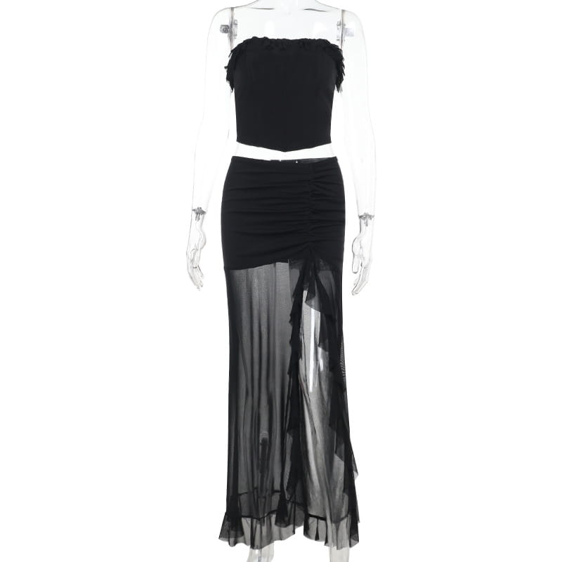 Tube Top Mid-length Dress Set Women - Black / L - electronic accessories
