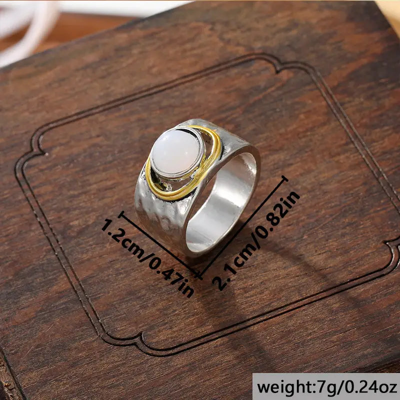 Two-tone Wide-faced Gemstone Ring Vintage - electronic accessories