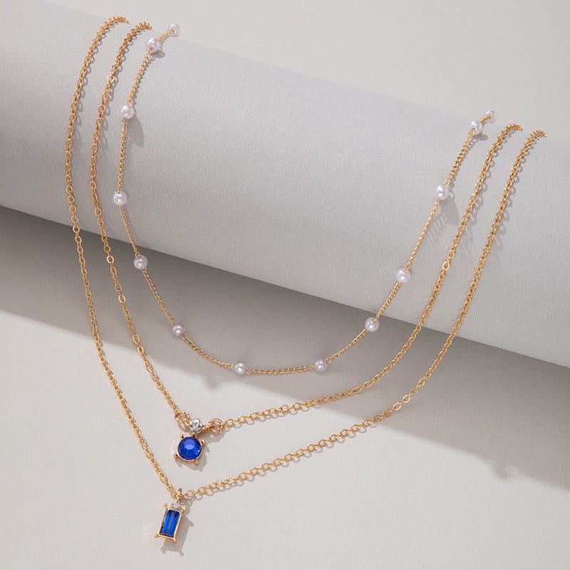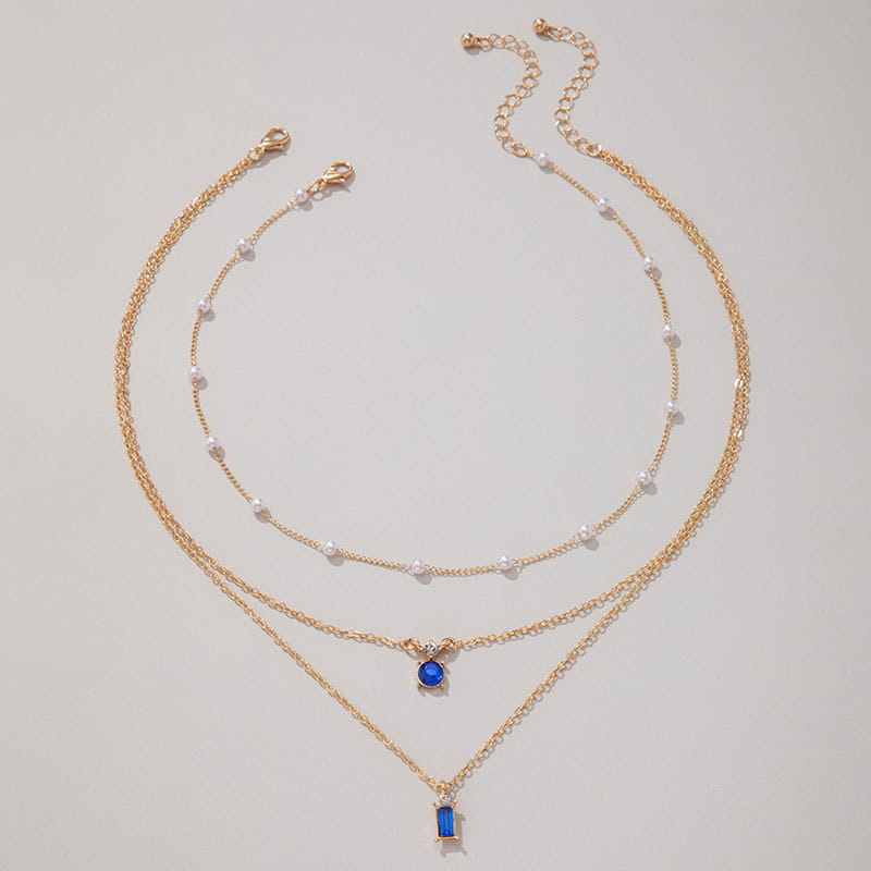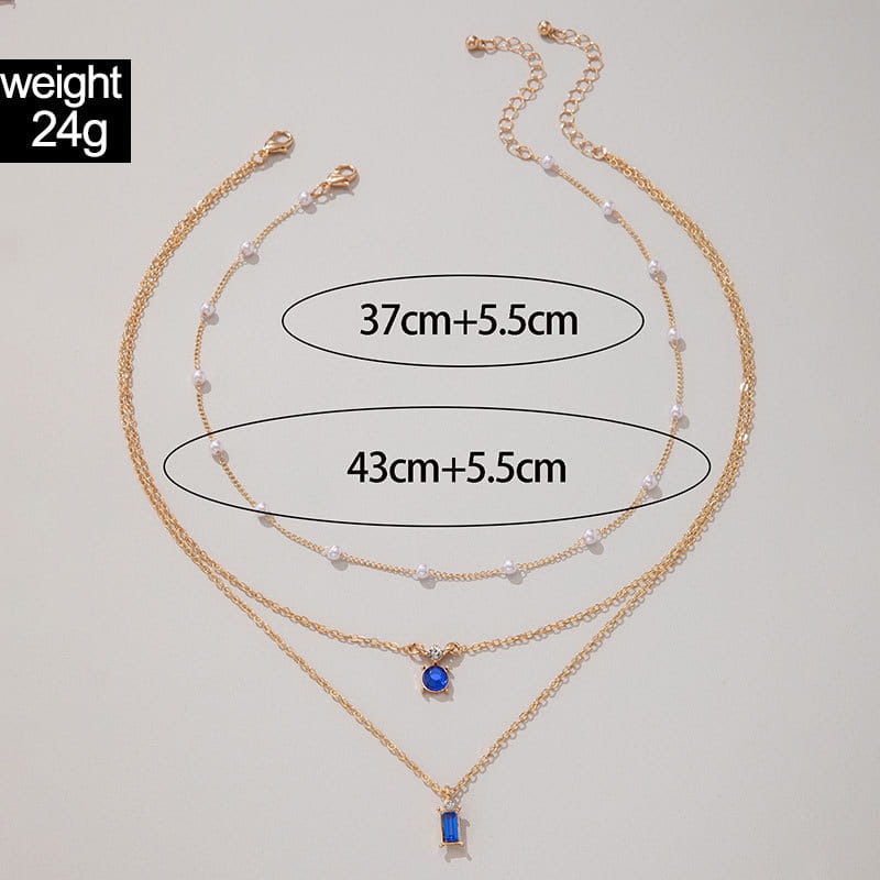 Vintage Grandmother Blue Green Pearl Multilayer Simplicity Necklace - 23198gold - electronic accessories