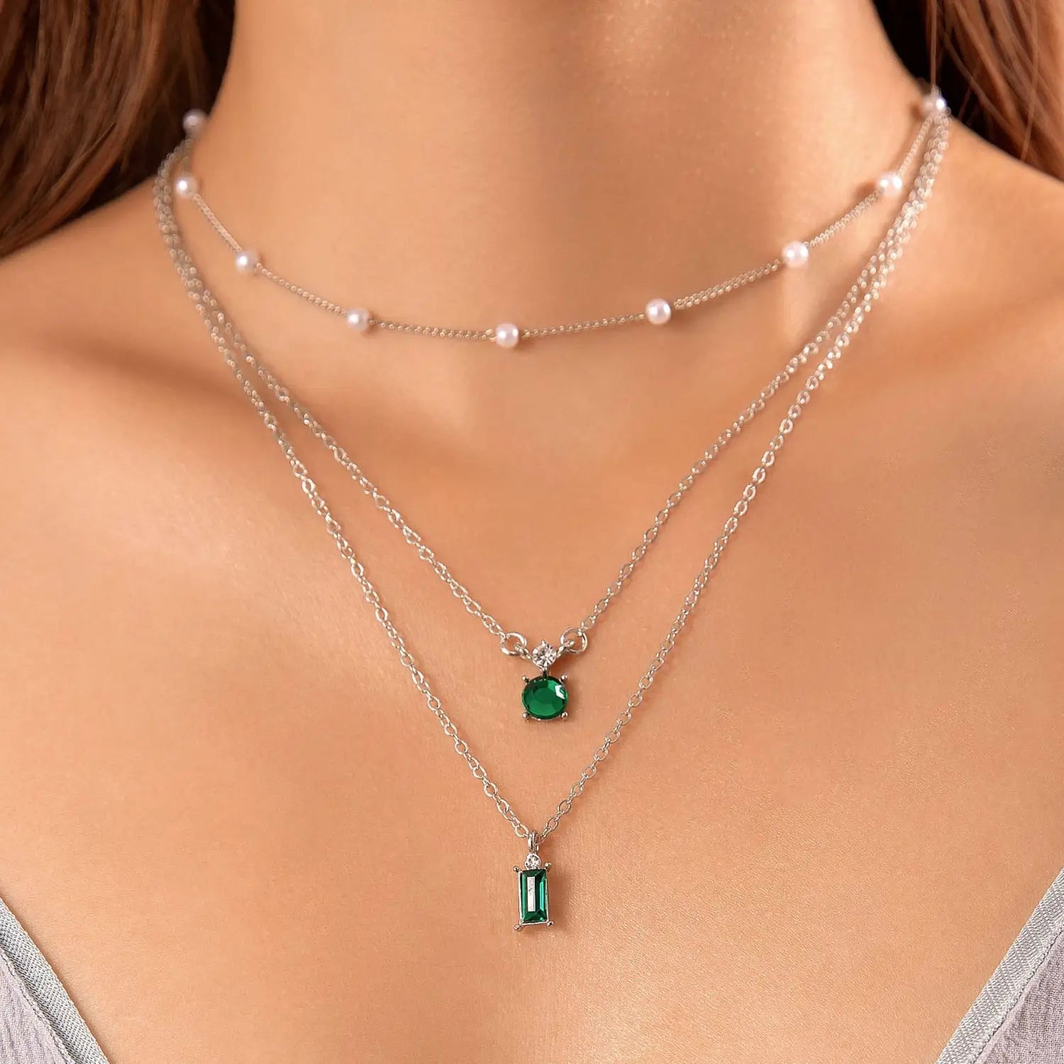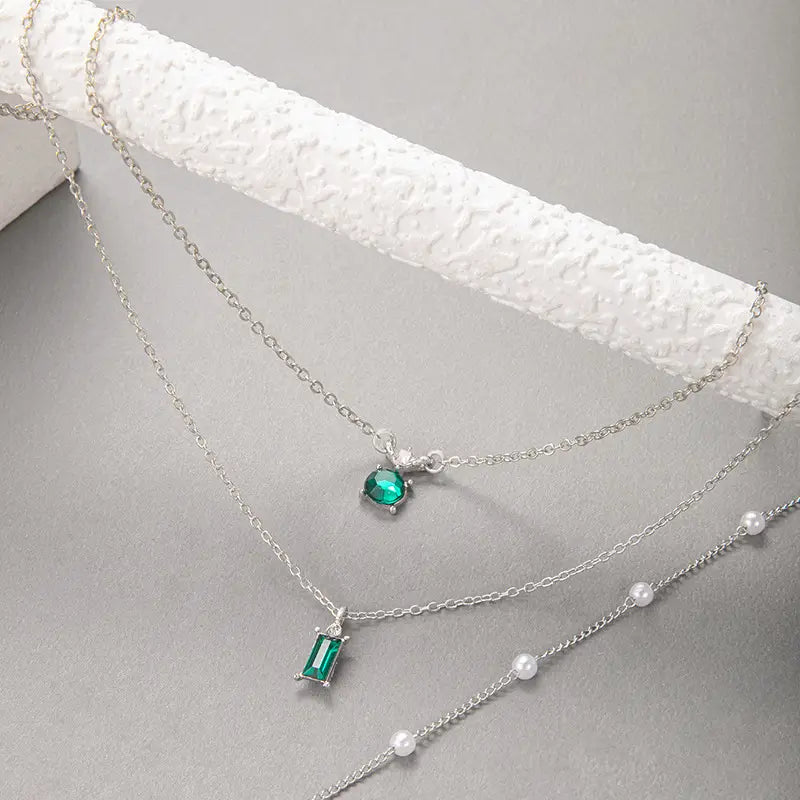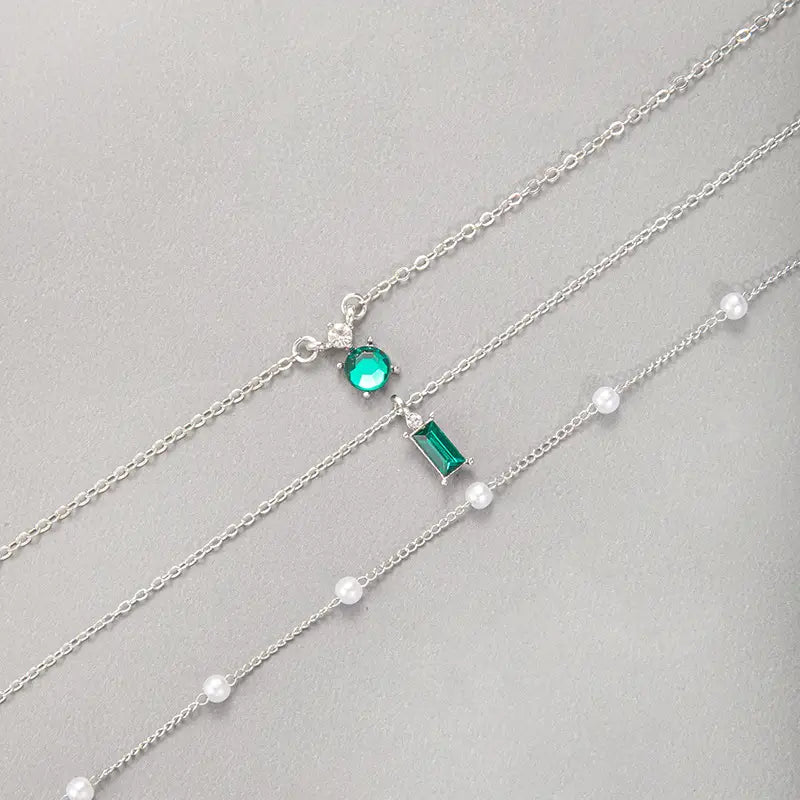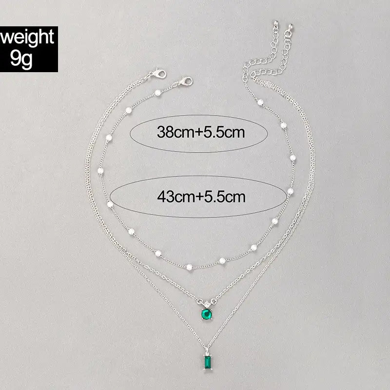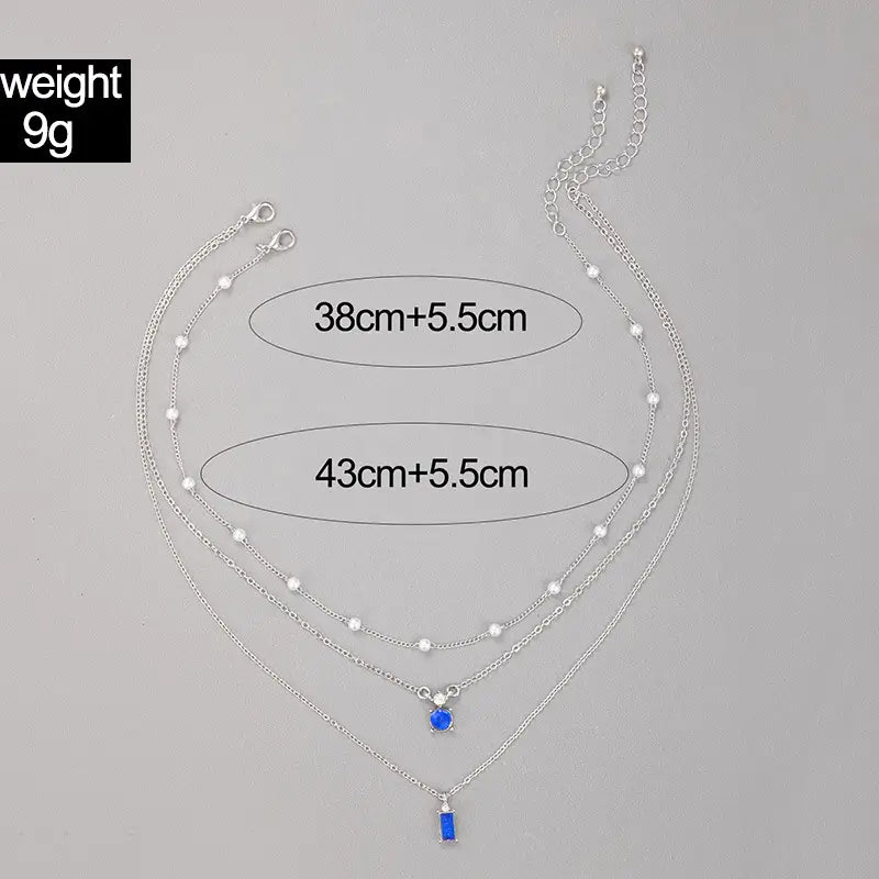 Vintage Grandmother Blue Green Pearl Multilayer Simplicity Necklace - 23931silver - electronic accessories
