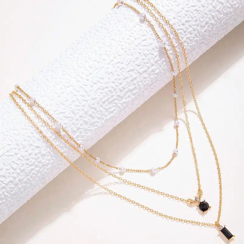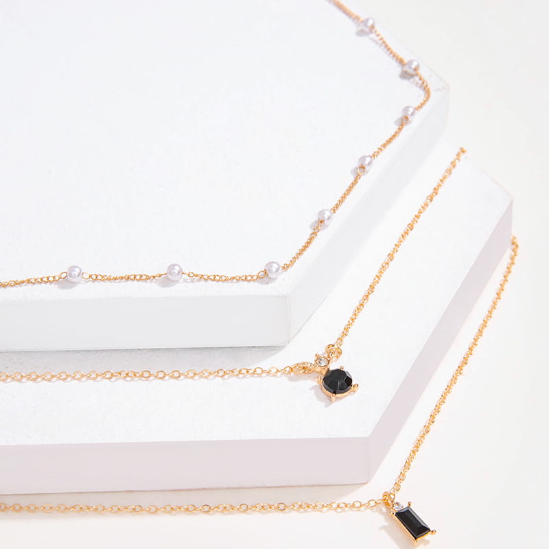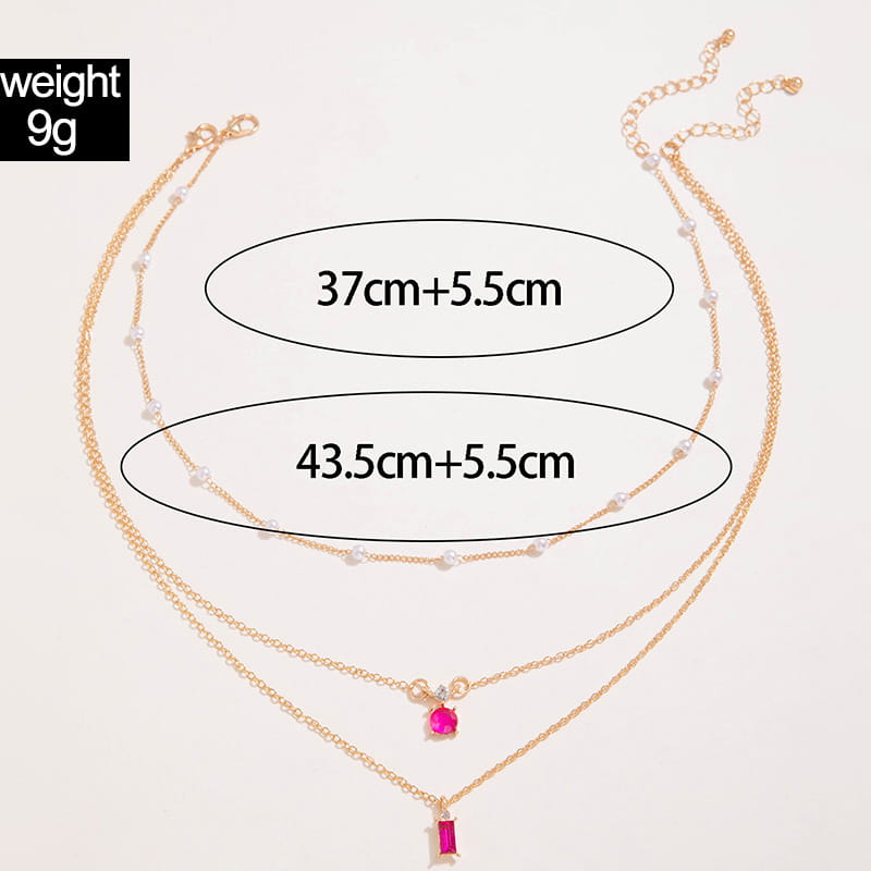 Vintage Grandmother Blue Green Pearl Multilayer Simplicity Necklace - 23198rose red - electronic accessories