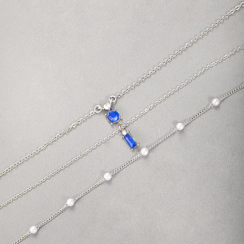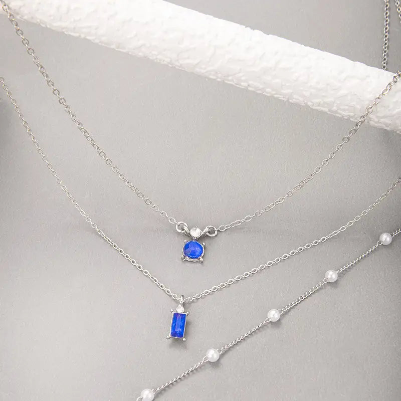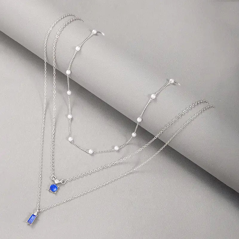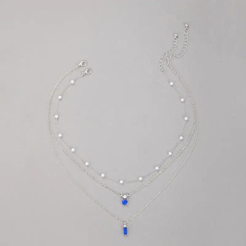 Vintage Grandmother Blue Green Pearl Multilayer Simplicity Necklace - 23198silverblue - electronic accessories