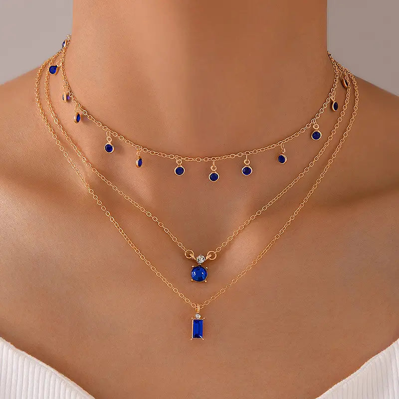 Vintage Großmutter Blau Grün Perle Mehrschichtige Schlichtheit Halskette
