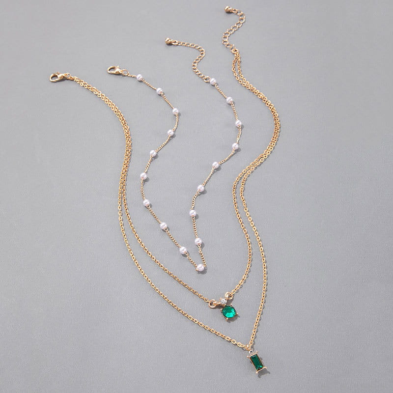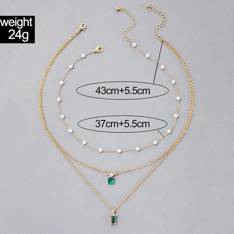 Vintage Grandmother Blue Green Pearl Multilayer Simplicity Necklace - 23931gold - electronic accessories