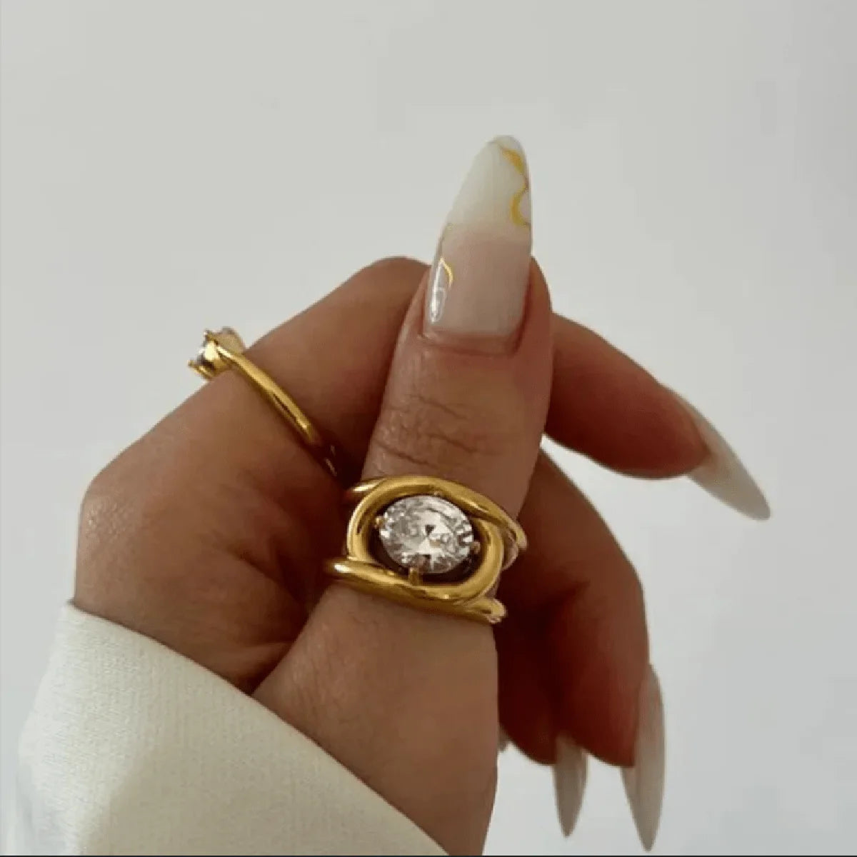 Vintage Oval Zircon Ring for Women - Gold / 6