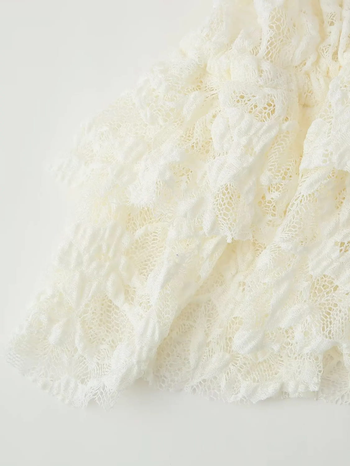 Damen Schleife Layered Lace Shirt Hohl V-Ausschnitt