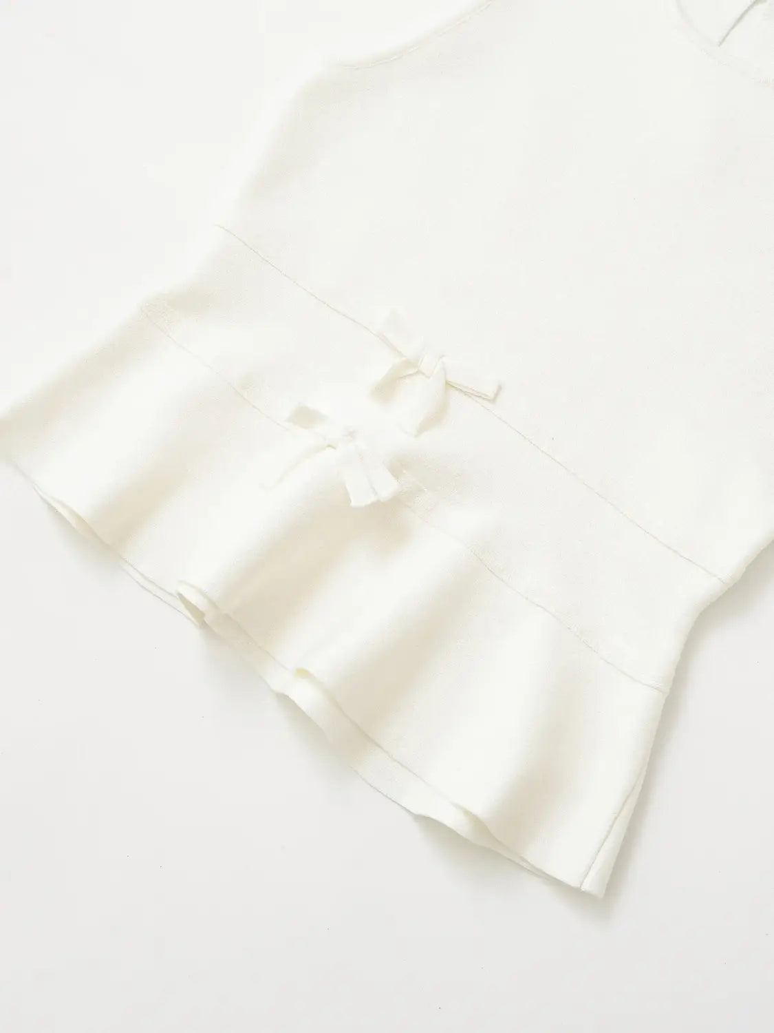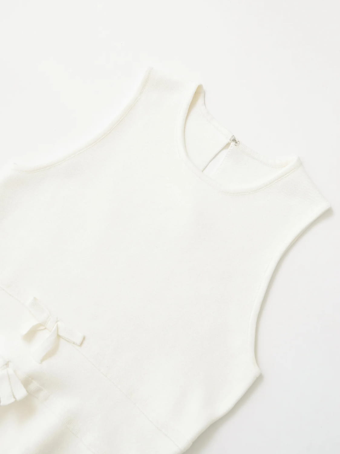 Women Bow Tie Knit Vest Slim Fit Round Neck Sleeveless Hidden Button Short Top
