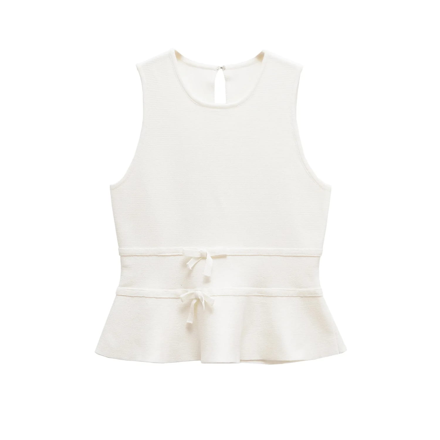 Damen Strickweste mit Fliege, schmale Passform, Rundhalsausschnitt, ärmellos, versteckter Knopf, kurzes Top