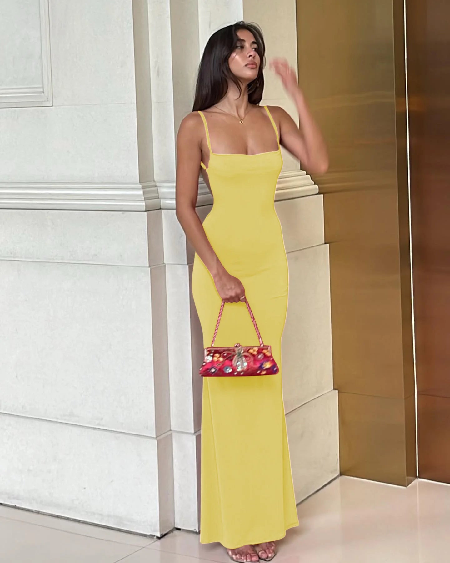 Women Evening Long Dress - Yellow / L