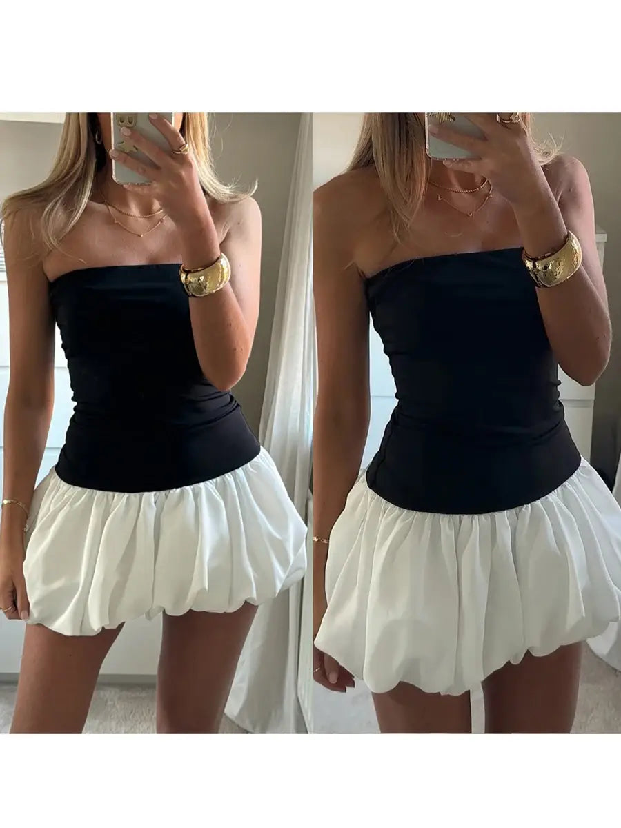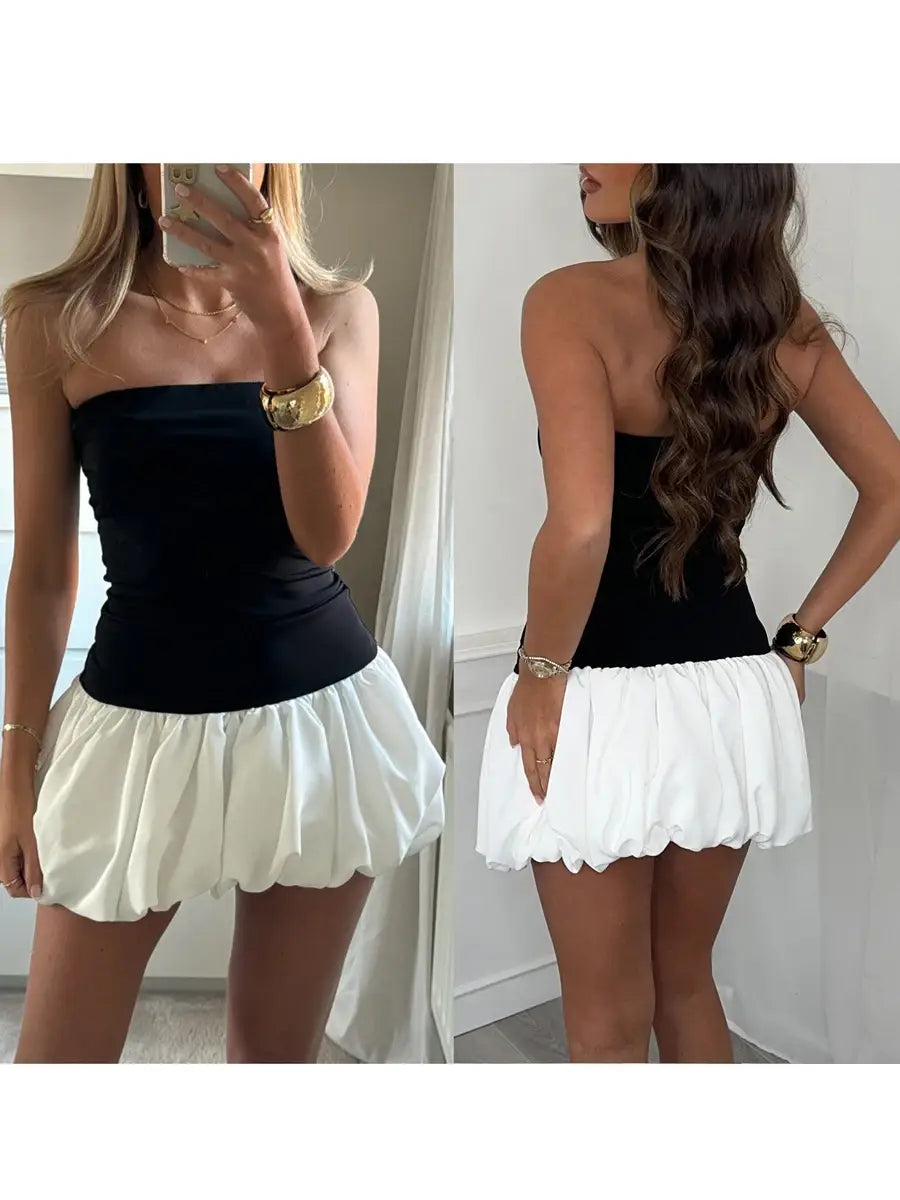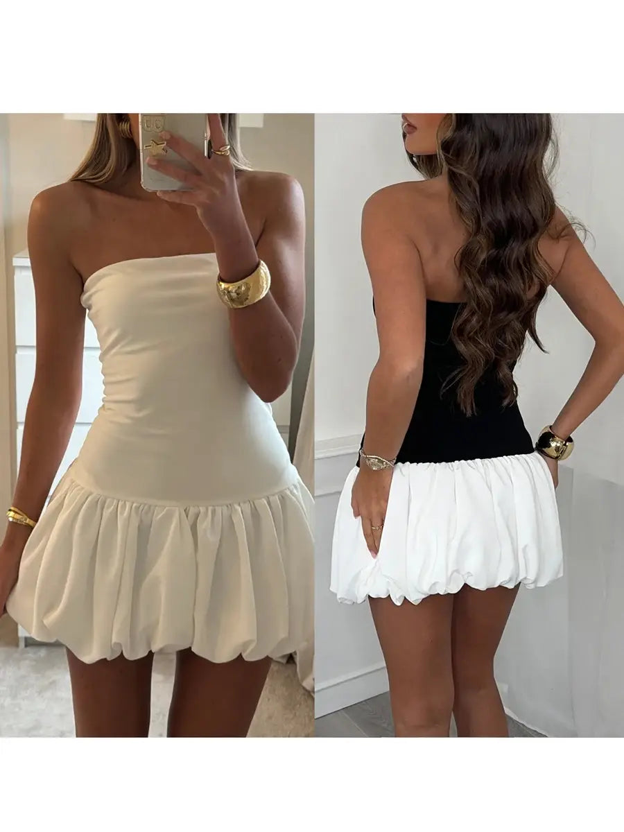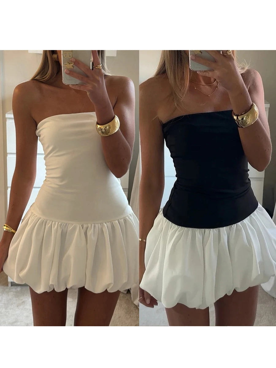 Women Sleeveless Strapless Mini Dress Summer