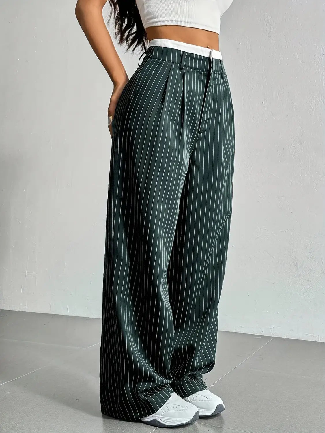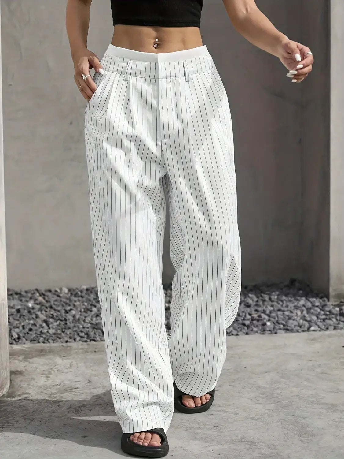 Women Stripes Printed Full Length Pants - Blue vermicelli / S