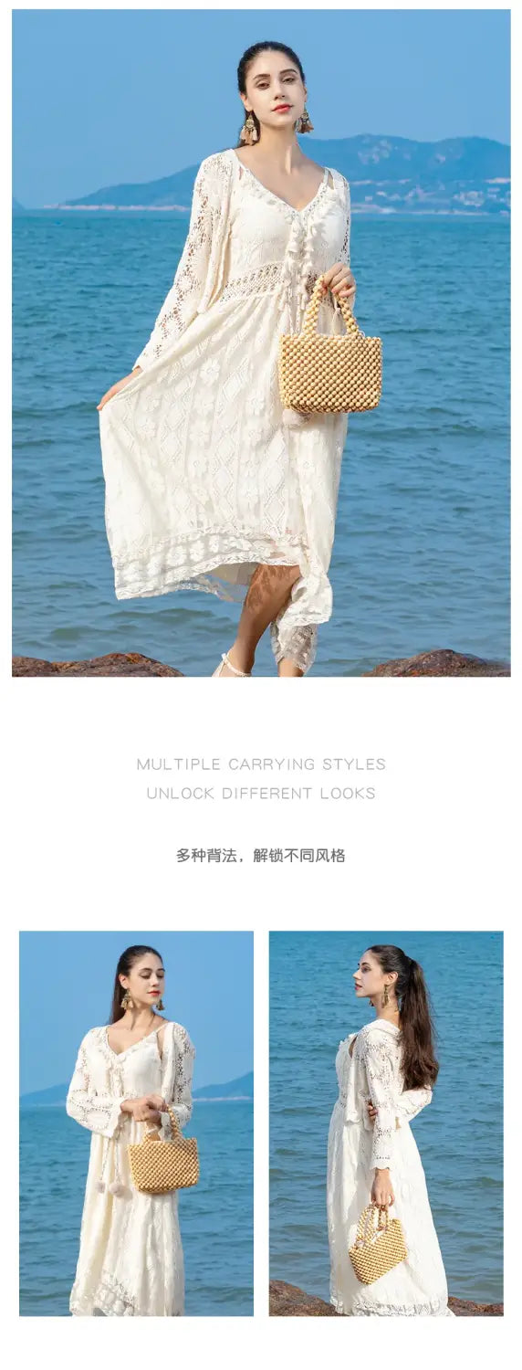 Women Top Handle Bag Hand-Woven Hollow Out Totes Bags