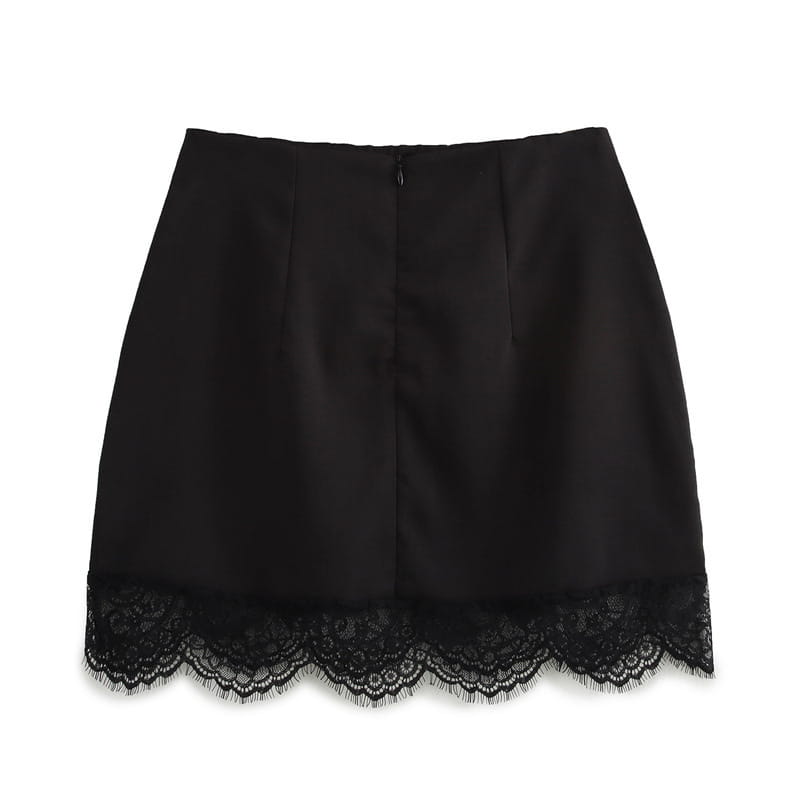 Women’s Black Stitching Lace Sheath Skirt - Other